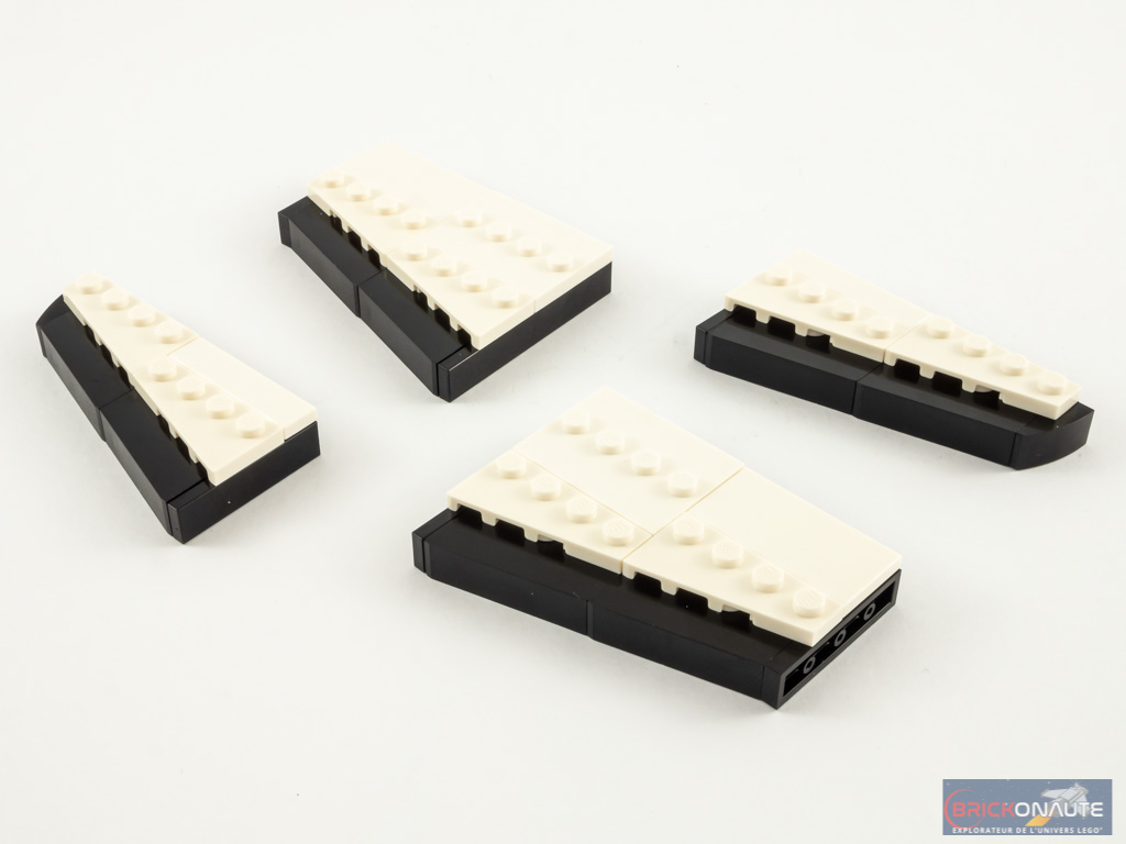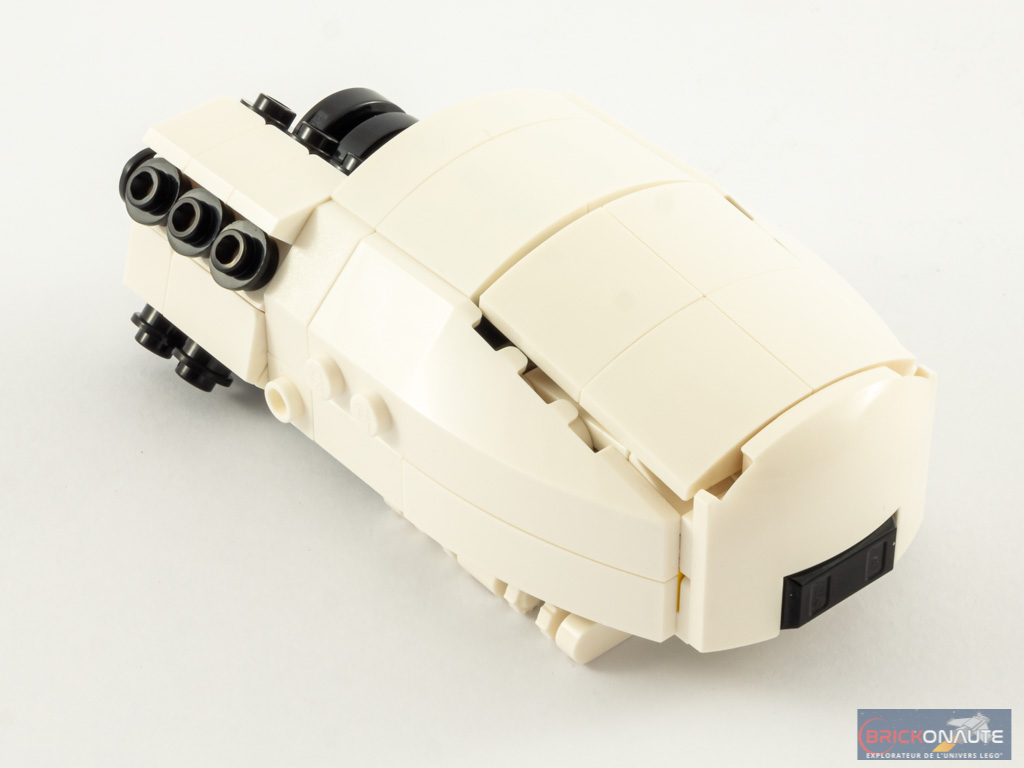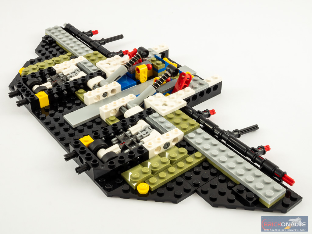 Pour rester sur l’expérience de construction, hormis les autocollants internes à la soute dont je parlais un peu plus haut, c’est également très intéressant et varié. Les techniques employées par le designer sont inventives, notamment lorsqu’il s’agit de trouver des angles un peu particuliers pour les moteurs ou la dérive par exemple. Sans oublier la manière d’intégrer les différentes fonctionnalités, qui ne nuisent par ailleurs absolument pas au design de l’ensemble tant elles sont bien intégrées.