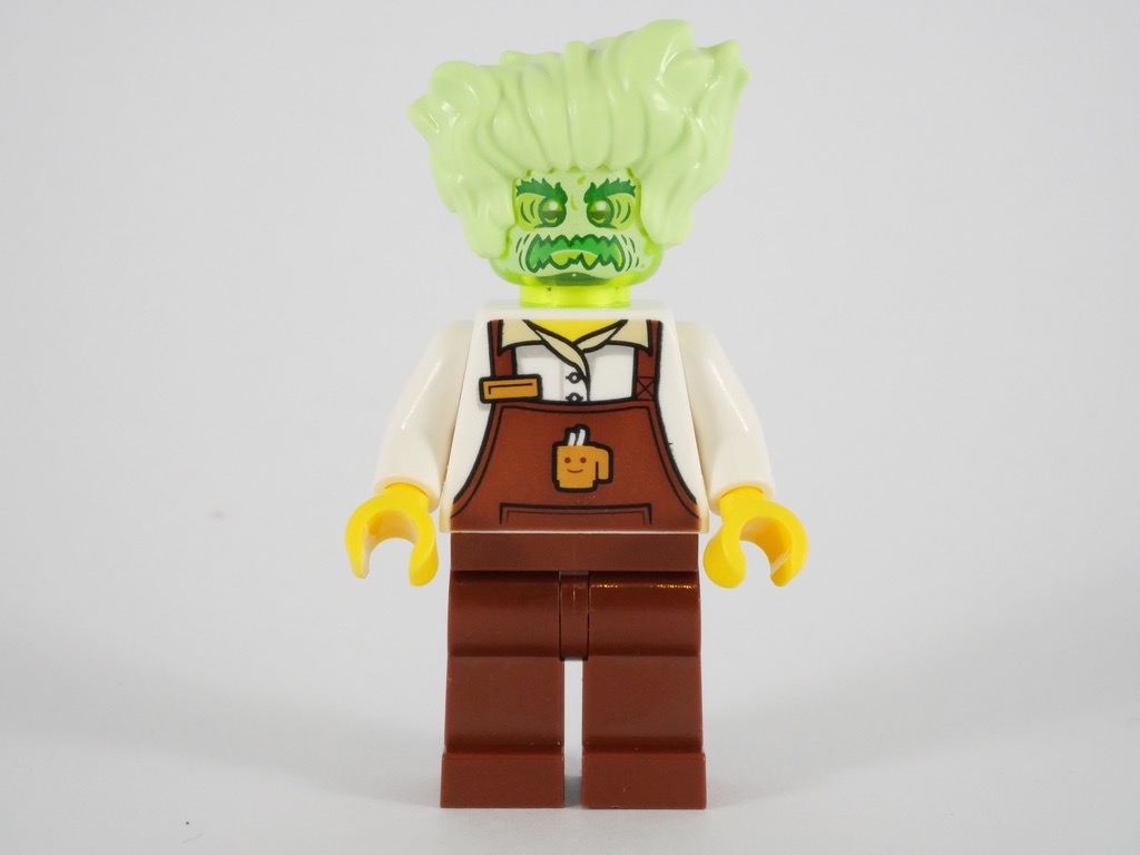 Le set contient deux minifigs. Parker L. Jackson porte la même tenue que dans les autres sets de la gamme : un pantalon déchiré et une veste en jean joliment détaillée. Elle dispose d’un smartphone pour aller à la chasse aux fantômes. Le barman Rocky porte une salopette marron, avec une petite tasse de café sur le torse. On a déjà pu voir cette tenue dans d’autres boîtes, rien d’inédit. Rocky peut être transformé en fantôme (comme d’autres personnages dans les autres sets de cette gamme), avec une nouvelle chevelure et une tête couleur trans neon green.