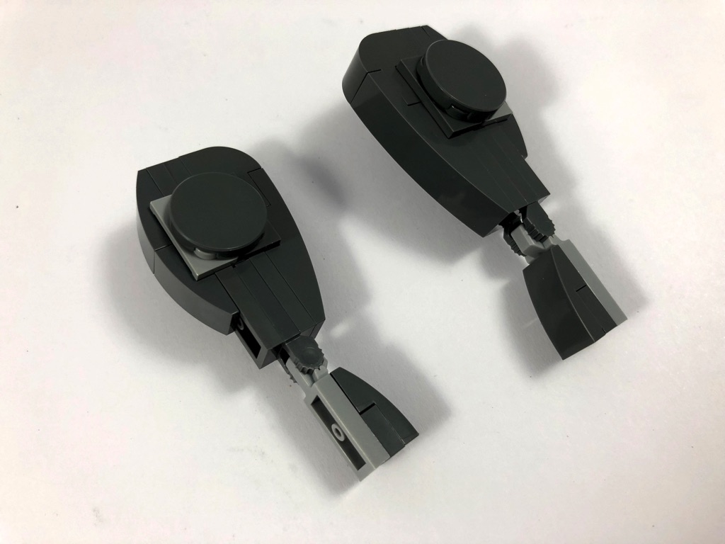 Nous commençons par l’Occamy, ce serpent ailé à tête d’oiseau. Il se constitue pour l’essentiel de 8 sous-assemblages (dont 5 identiques) articulés entre eux par des ball joints autorisant tous les degrés de liberté. On notera la tête tampographiée absolument magnifique, et la pièce totalement nouvelle pour la partie inférieure de la mâchoire. Les écailles (Plate, Modified 1 x 1 with Tooth Vertical en medium azure) ne sont présentes que pour la troisième fois dans un set, et il y en a 20. Les ailes, monochromes, sont également une nouveauté dans cette couleur et superbement réalisées. Les ball joints permettent, en s’autorisant une concession sur le design, de placer l’animal dans la position souhaitée. C’est intelligent, jouable et solide. Ce premier animal est une réussite.