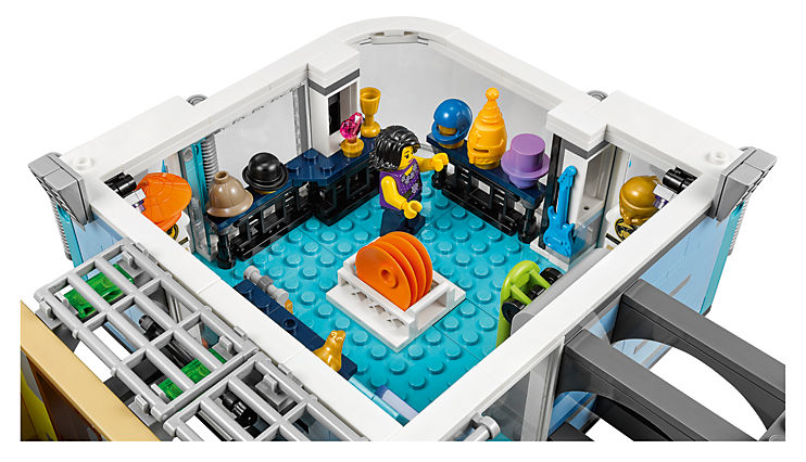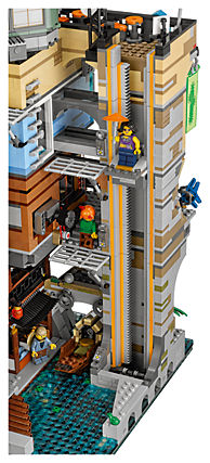 Le deuxième niveau présente une boutique d’articles de mode avec 2 mannequins et des produits miniatures NINJAGO® assortis, un site de construction avec un bonsaï, un magasin de BD avec une enseigne en briques, un comptoir caisse, un étal de BD avec des éléments assortis, dont des cartes d’entraînement NINJAGO à collectionner, un restaurant de dégustation de crabe avec une enseigne en forme de crabe en briques à l’entrée et un four avec fonction de grillade de crabe, un distributeur automatique de billets, 15 billets miniatures (possibilité d’en retirer jusqu’à 13 au distributeur automatique) et un présentoir d’affiche de cinéma avec 4 affiches de film miniatures interchangeables.