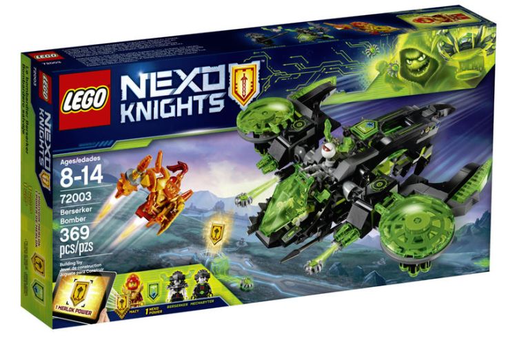 Autre petite info du jour, outre le fait que nous avons donc confirmation que la gamme Nexo Knights continuera bien en 2018 : le site américain de l’enseigne Toys R Us a mis en ligne les premières images du set 72003 – Berserker Bomber.