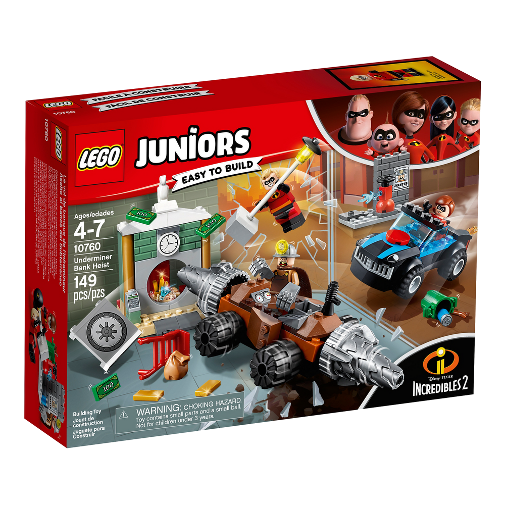 - 10760 – Le braquage d’une banque du Démolisseur : 149 pièces – 32,99 €, avec Mme Indestructible, M. Indestructible et le Démolisseur