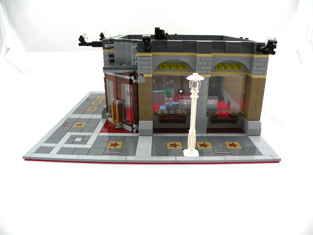 Mais également beaucoup de points forts : des astuces de construction à la pelle, des utilisations de pièces de manière détournées qu’on ne pouvait imaginer, la limousine noire en petit « bonus », l’assemblage de l’enseigne hyper bien pensé, un choix des couleurs très judicieux, et j’en passe…