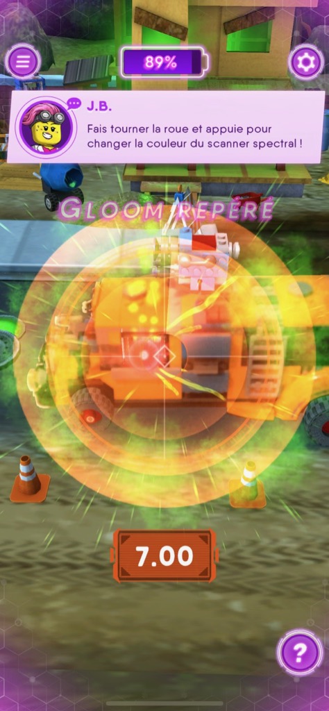 Comme je vous le disais en introduction, j’étais très curieux de découvrir cette gamme et sa nouvelle façon d’interagir avec le modèle offerte par l’application. La première chose que j’ai faite, une fois le modèle construit, a donc été de tester celle-ci. Et c’est plutôt pas mal : une fois le modèle « scanné », vous devez d’abord trouver le « gloom » qui hante le modèle. Parfois, cela fait apparaître un fantôme, que vous devez alors combattre. Le but étant de « dégloomer » tout le modèle. Le tout fonctionne plutôt bien, mais (à moins que je ne sois très nul) j’ai trouvé le jeu un peu difficile, du moins au démarrage. Une fois quelques améliorations débloquées, ça se passe nettement mieux. Un point positif pour la jouabilité globale du modèle.