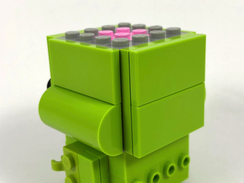 Vous remarquerez que les tenons situés sur le ventre sont légèrement décalés : on obtient ainsi le ventre proéminent qui caractérise notre fantôme. Les bras sont classiques, mais une chose m’a dérangée : la différence de couleur entre les pièces. Pour une gamme résolument dédiée à l’exposition, c’est assez inadmissible. J’avais eu le même problème, avec cette même couleur lime, lors de la construction du set 42054 – Claas Xerion 5000 Trac VC (dont vous pouvez lire la review ici – il s’agit d’une des toutes premières reviews publiées sur le site, soyez indulgents :D).