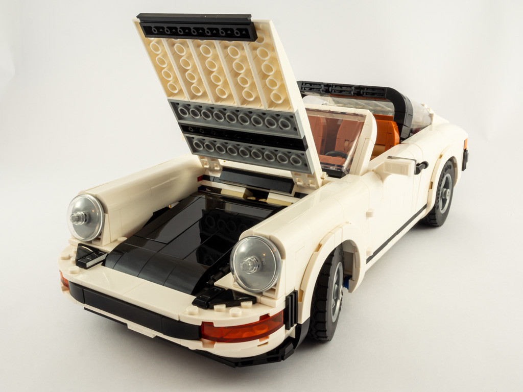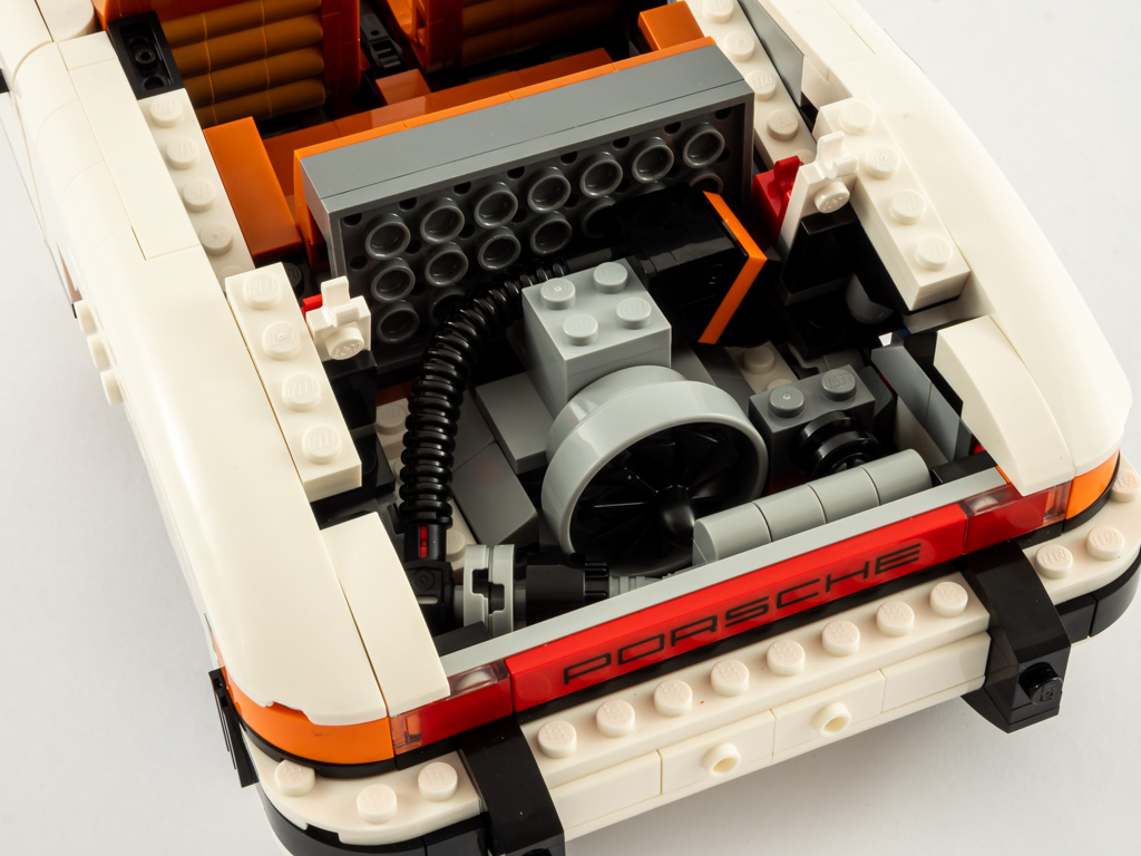 Ce qui est très intéressant, vous l’aurez également noté, c’est que LEGO semble avoir écouté les fans : pas un seul autocollant dans ce set. Toutes les pièces sont tampographiées, qu’il s’agisse de la slope du capot avec le logo Porsche, des différentes plaques d’immatriculation, du tableau de bord ou encore des logos Targa et Turbo au niveau du coffre.