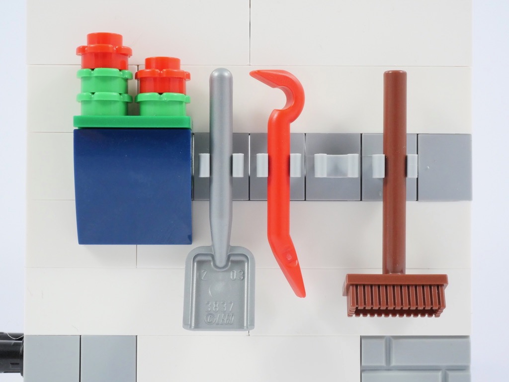 On continue avec le potager, entouré de panels marrons. Hormis une petite plante dans un coin, il est plutôt vide. LEGO nous le vend comme un emplacement pour bloc notes, mais en réalité c’est assez petit… on y casera tout au plus quelques post-it.