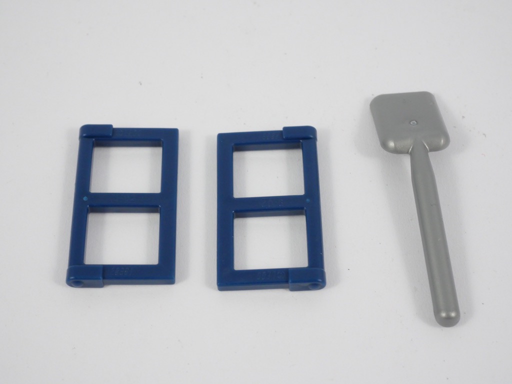 - une pelle (Minifigure, Utensil Shovel (Round Stem End)) en flat silver, présente dans 3 sets