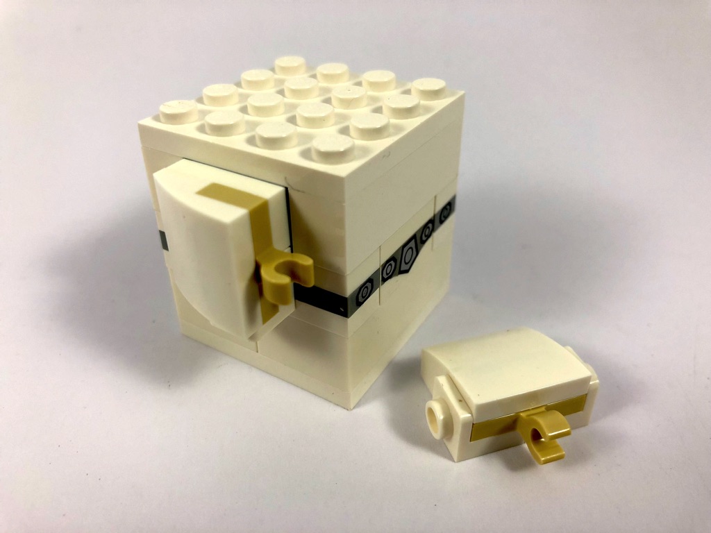 - 1 brique 1×2 blanche tampographiée avec la boucle de ceinture