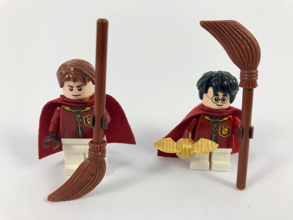 Les minifigs sont de bonne facture, même si l’on aurait apprécié un peu plus de travail pour les jambes des joueurs, et celles d’Hermione, monochromes. Seul le professeur Rogue dispose de jambes tampographiées. Les 4 joueurs sont exclusifs à ce set, tandis qu’on peut retrouver le professeur Rogue et Hermione dans 1 et 2 autres boîtes respectivement.