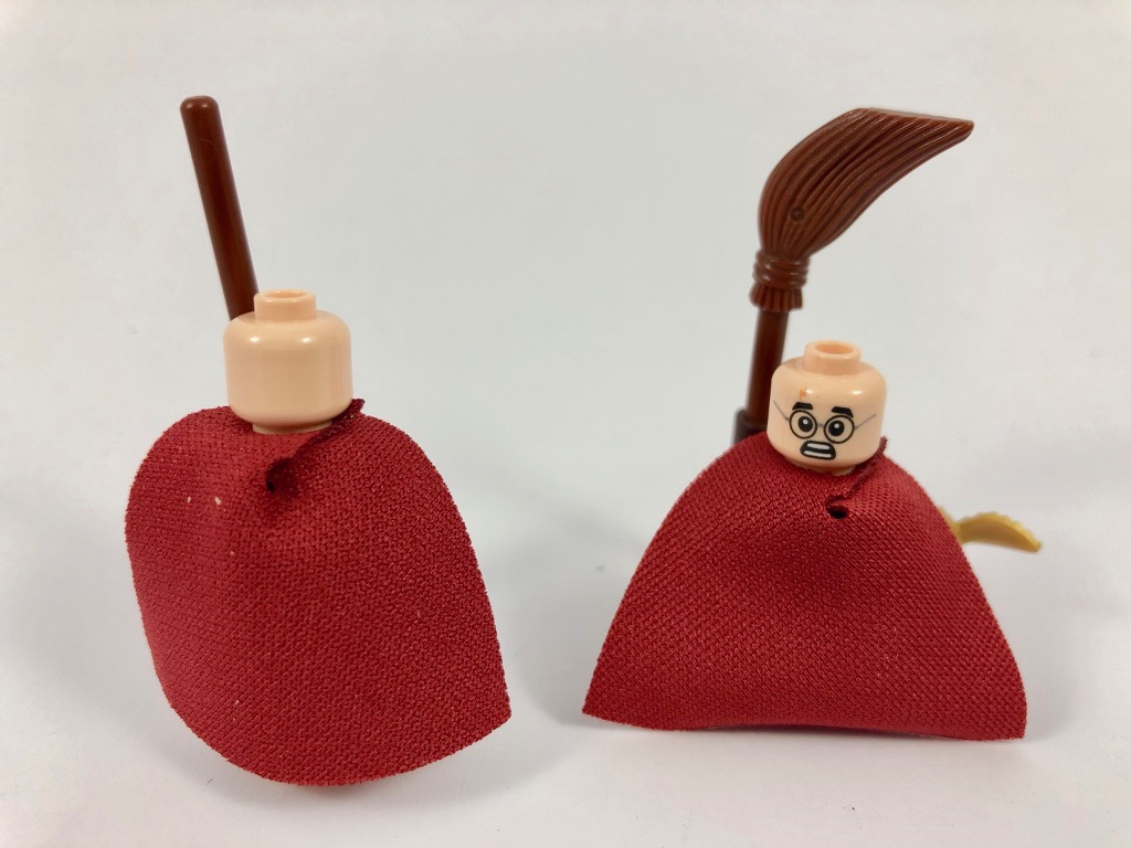 Les « équipes » de quidditch sont chacune composées de 2 joueurs. Du côté de Gryffondor, nous avons droit (évidemment) à Harry Potter, mais également à Oliver Wood (Olivier Dubois en VF), gardien et capitaine de l’équipe. Leurs pantalons sont blancs, avec de petites jambes non articulées pour le jeune Harry Potter. Le torse est identique, et représente la cape portée par les joueurs de Gryffondor. Petit détail sympathique, la capuche est représentée au dos, bien que cachée par la cape située au-dessus. Double visage pour Harry Potter, mais pas pour Dubois. On appréciera également le petit espace laissé dans la coiffure de Harry, permettant d’apercevoir sa cicatrice en forme d’éclair. Les deux personnages ont un balai, Harry ayant également droit au Vif d’Or, nouvelle pièce en 2018.