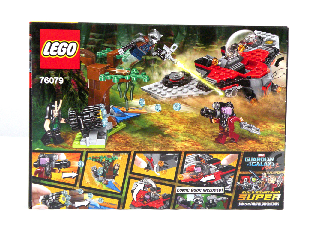 Sur l’avant de la boîte, une « mise en scène » du set, avec Taserface arrivant dans son vaisseau et se faisant attaquer par Rocket et Mantis, le tout dans un décor forestier. En encart, une photo des 3 minifigs du set, et le logo du film. En haut à droite, une photo des principaux protagonistes. Sur l’arrière, une autre mise en scène, cette fois Taserface est descendu de son vaisseau et s’attaque à nos deux Gardiens de la Galaxie. Les principales fonctionnalités sont inventoriées, et elles sont assez nombreuses pour un set de cette taille.