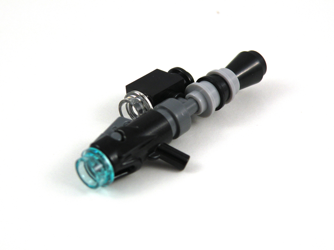 On ajoute à cet arbre, à l’aide d’un clip, un ensemble sur lequel repose une sorte de « gatling gun », qui permet grâce à un axe Technic et à un engrenage servant de gâchette de faire partir pas moins de 6 tenons les uns après les autres. Elle porte le doux nom de Minifig, weapon rapid shooter six barrel si vous voulez jeter un oeil sur Bricklink.