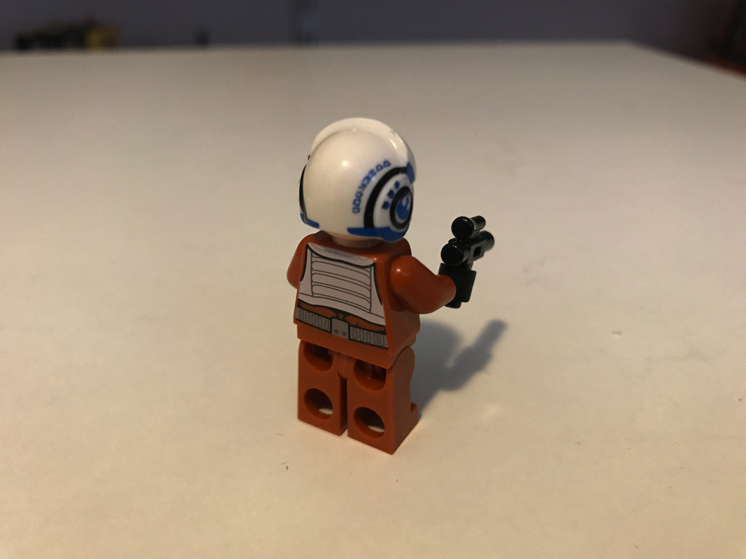 C’est la minifig présente dans cette boîte qui représente vraiment tout l’attrait de ce set. Il représente en fait, au lieu d’un « simple » pilote de X-Wing comme présenté sur la boîte, un personnage appelé Snap Wexley et joué dans Le Réveil de la Force par Greg Grunberg. Le casque, incluant une visière translucide jaune, est vraiment très bien réalisé. La tête, qui ne présente qu’une seule face, présente une barbe noire. Le torse et les jambes sont identiques à celles que l’on peut retrouver dans d’autres sets, et notamment le pilote inclus dans le set 75102 – Poe’s X-Wing Fighter. Les détails de la combinaison sont vraiment très soignés et agréables à l’œil.