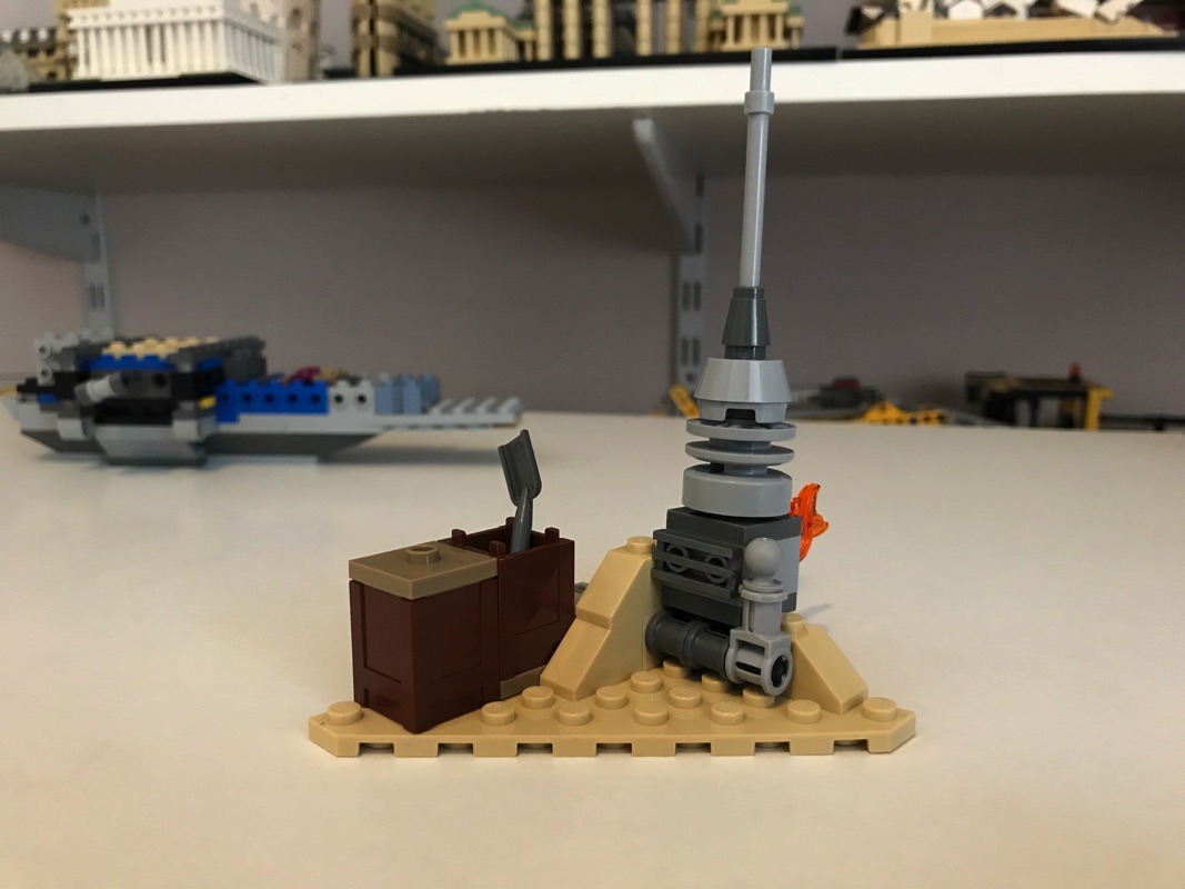 Vient ensuite l’assemblage d’une tourelle, avec un système de basculement permettant de simuler la destruction de celle-ci en faisant apparaître des flammes.