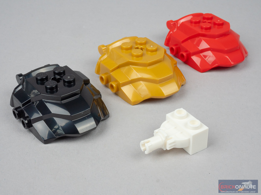 - de nouvelles briques en forme de « coquille », utilisées au niveau des hanches et des genoux, en 3 couleurs différentes (noir, rouge et pearl gold) ;