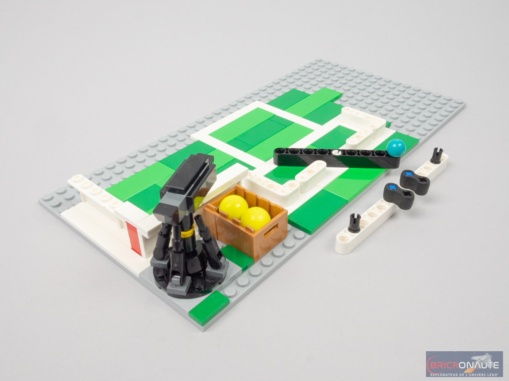 Sur ce même morceau de terrain on trouve une rambarde blanche telle qu’on la trouverait sur tous les terrains des villages de campagne, un but en tubes un peu grossier et sans filet, une caméra sur une turntable et une station pour la VAR qui aurait mérité un écran, à minima. La seule « fonctionnalité » présente consiste à fixer la gardienne sur un beam Technic pour tenter d’arrêter les tirs des joueuses en la faisant aller à droite ou à gauche. C’est léger.