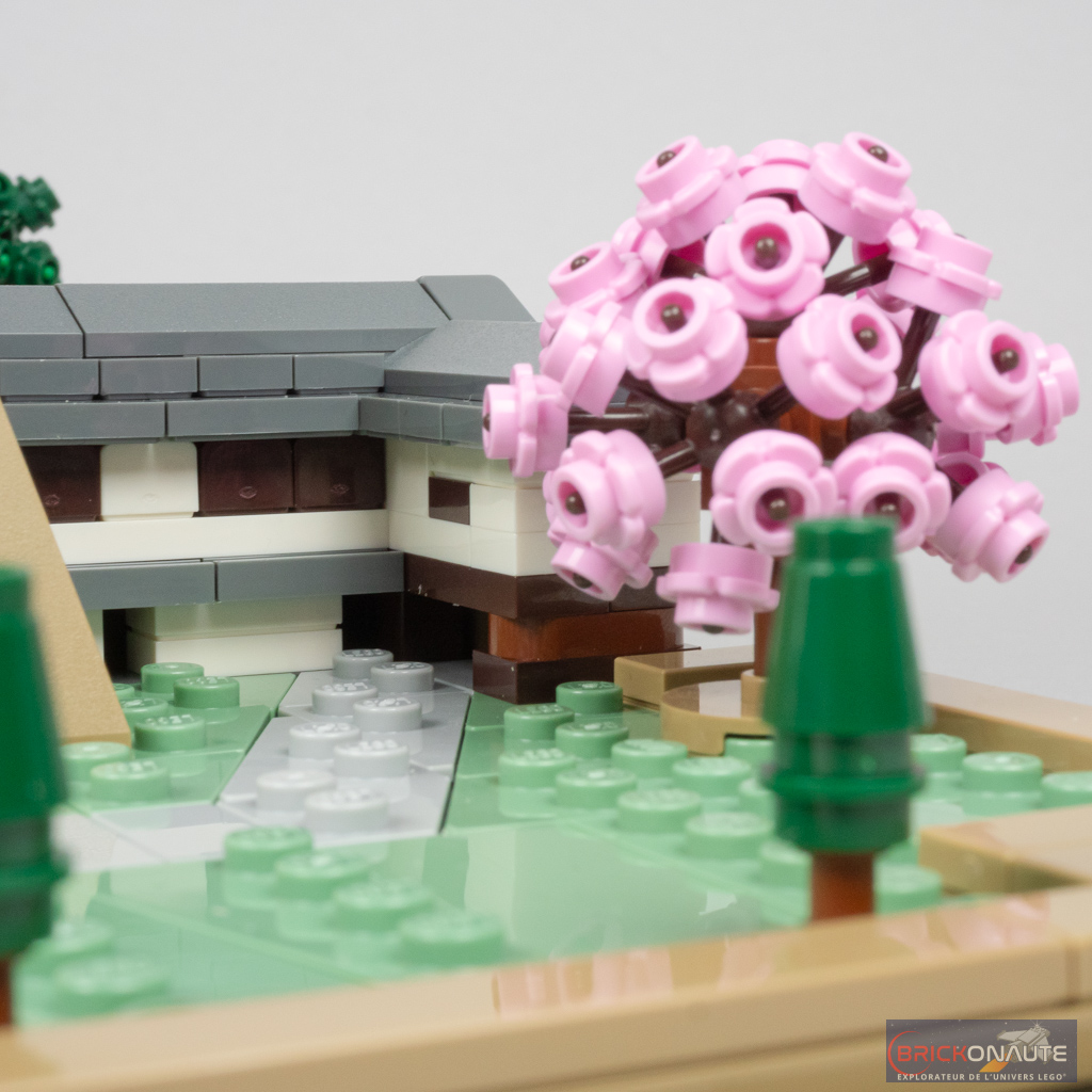 On termine la construction en assemblant un arbuste et 3 grands arbres – 2 au feuillage vert et un autre rose. LEGO prévoit d’ailleurs l’inventaire nécessaire pour remplacer l’arbuste et l’arbre rose par des feuillages verts. Ces 4 arbres et 2 arbustes contiennent un total de… 176 pièces sur les 2125 de l’inventaire complet.