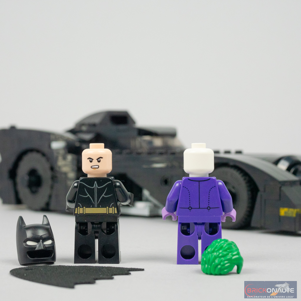 Pour le reste, le costume de Batman est légèrement revisité (rien d’extraordinaire), avec une cape souple à un seul trou. La tête de Bruce Wayne est plutôt commune. Le Joker porte une tenue violette inédite (sans la fleur lance-acide), et dispose d’un nouveau visage et d’une coiffure jusqu’ici inédite dans cette couleur. Comme d’habitude, c’est propre et sans bavure – même si la ceinture de Batman pourra paraître trop terne.