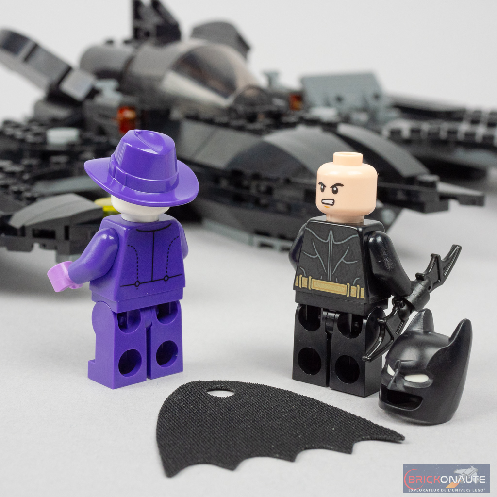 On trouve ici deux minifigs, presque identiques à celles vues dans le set 76224 Batmobile: Batman vs. The Joker Chase : Batman et le Joker. La seule différence réside dans la coiffure de ce dernier, qui porte ici un chapeau de type Fedora violet. Un chapeau plutôt rare dans cette couleur, mais pas inédit même s’il porte une nouvelle référence dans cette boîte.
