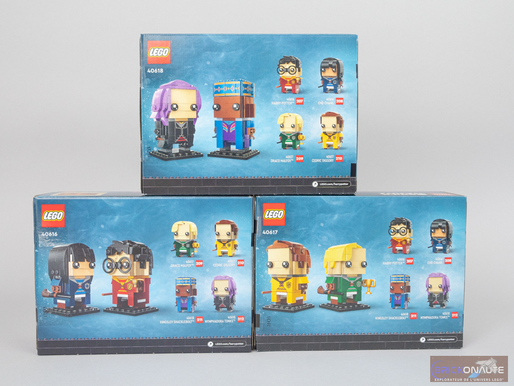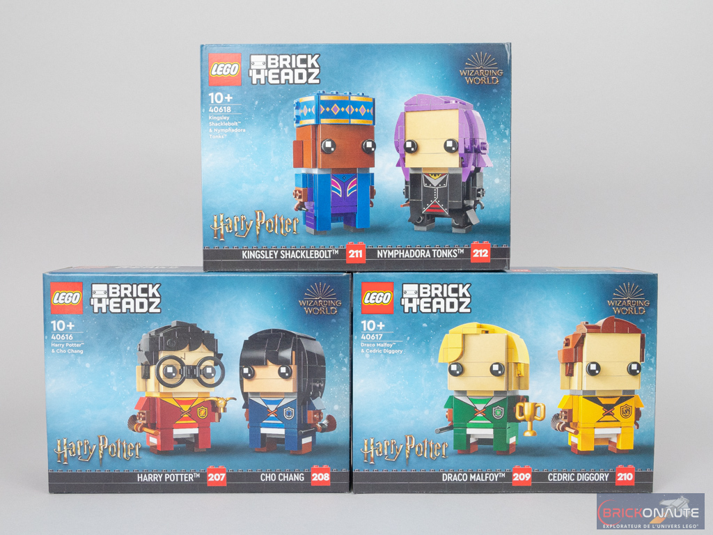 C’est parti pour un test groupé des 3 nouveautés LEGO BrickHeadz de l’univers Harry Potter attendues pour le 1er juin avec les sets 40616 Harry Potter & Cho Chang, 40617 Draco Malfoy & Cedric Diggory et 40618 Kingsley Shacklebolt & Nymphadora Tonks. Pas de mauvaise surprise, ces « couples » de BrickHeadz sont proposés au prix habituel de 19,99 € l’unité – soit 10 € le personnage.
