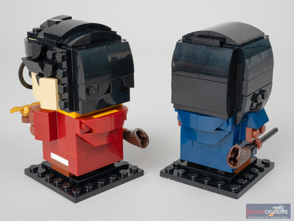 Chacune des boîtes contient deux notices d’instructions et des sachets numérotés pour chacun des personnages – on pourra donc partager la construction avec quelqu’un. Pas de stickers, tout est tampographié comme d’habitude dans cette gamme. Exceptionnellement, je ne vais pas vous détailler ici le processus de construction, très semblable d’une boîte LEGO BrickHeadz à l’autre. Si cela vous intéresse, je vous invite à retrouver les nombreux tests sur le blog.
