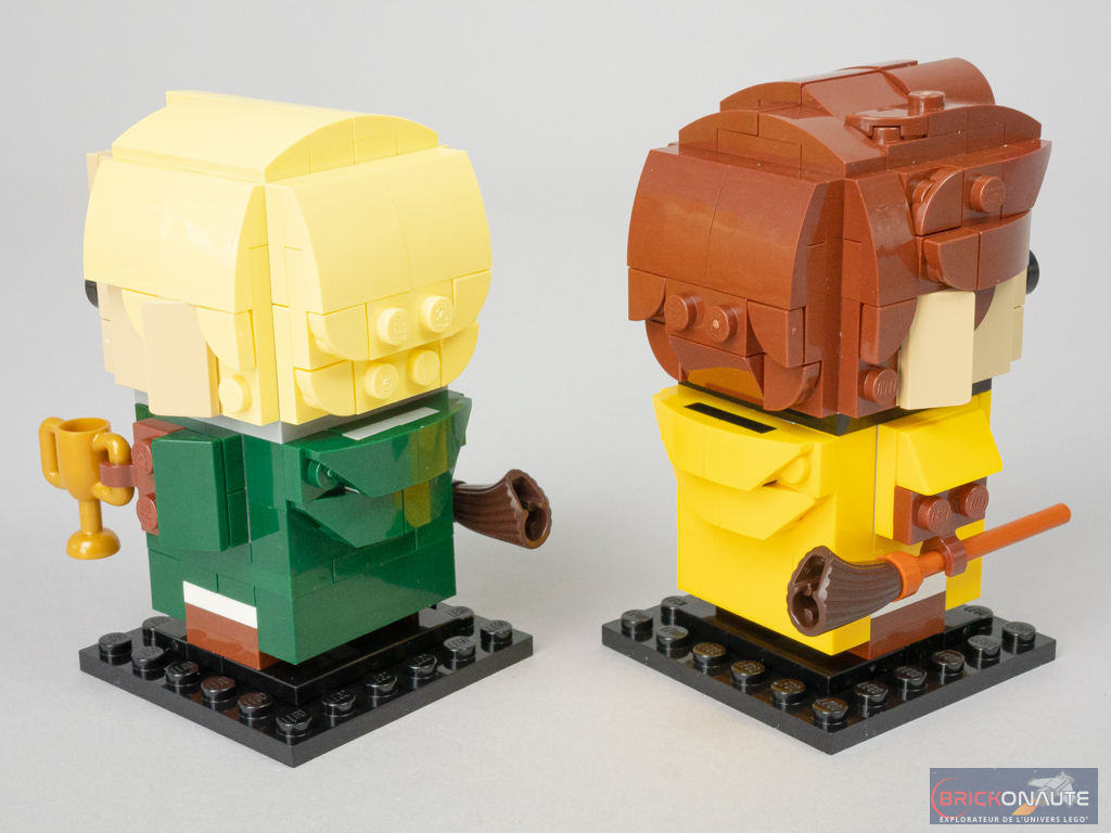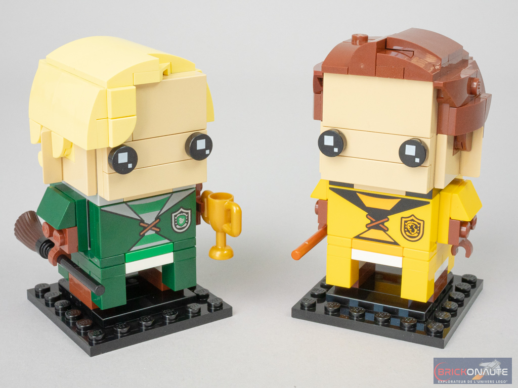 Si vous fréquentez régulièrement le blog, vous savez sans doute que j’apprécie particulièrement cette gamme LEGO BrickHeadz. Et je conçois tout à fait qu’elle soit très « clivante » : on aime, ou on n’aime pas. Quoi qu’il en soit, les 6 personnages proposés ici sont des dignes représentants de cette gamme de têtes au carré et sont bien réalisés. Si les personnages se ressemblent beaucoup, on notera ici un travail très intéressant sur les différentes chevelures et l’intégration de petits détails grâce aux éléments tampographiés avec les écussons des différentes maisons.