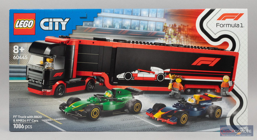 Changement de gamme aujourd’hui avec le test d’un set de la gamme LEGO City, et plus particulièrement d’une des boîtes créées dans le cadre du partenariat entre LEGO et la Formule 1 – je vous propose de découvrir aujourd’hui en détail la référence LEGO City 60445 F1 Truck with RB20 & AMR24 F1 Cars.
