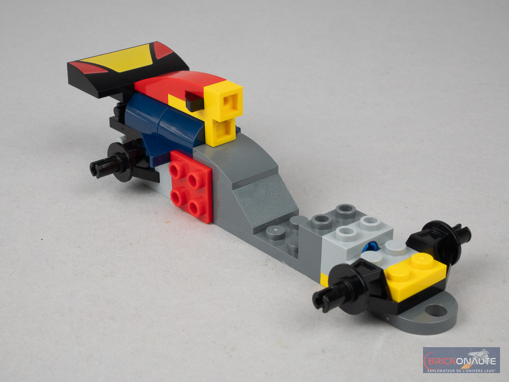 S’il y a un sujet sur lequel je suis resté sur ma faim, ce sont sans doute les minifigs mais je peux aussi comprendre que LEGO ait choisi de ne pas faire apparaître les innombrables sponsors sur les combinaisons dans un set dédié aux plus jeunes. J’aurais malgré tout aimé que les pantalons soient tampographiés, à minima pour les deux pilotes. Pour retrouver toutes les minifigs en détail, je vous invite à (re)lire le chapitre dédié un peu plus haut.
