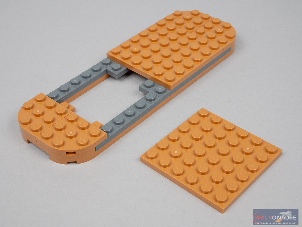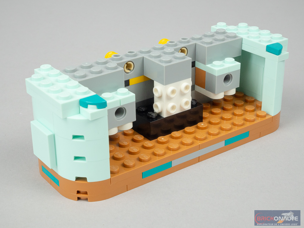 La planche elle-même n’est pas belle non plus, et franchement inintéressante à construire. Plutôt que d’utiliser cette petite slope jaune pour rehausser l’arrière, une solution avec les grandes pièces aqua servant à réaliser la chaussure du patin aurait sans doute été plus élégante. Notez qu’on ne réutilise pour ce skate qu’un tiers des pièces du set…