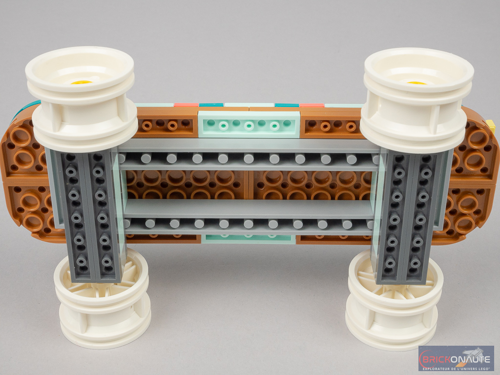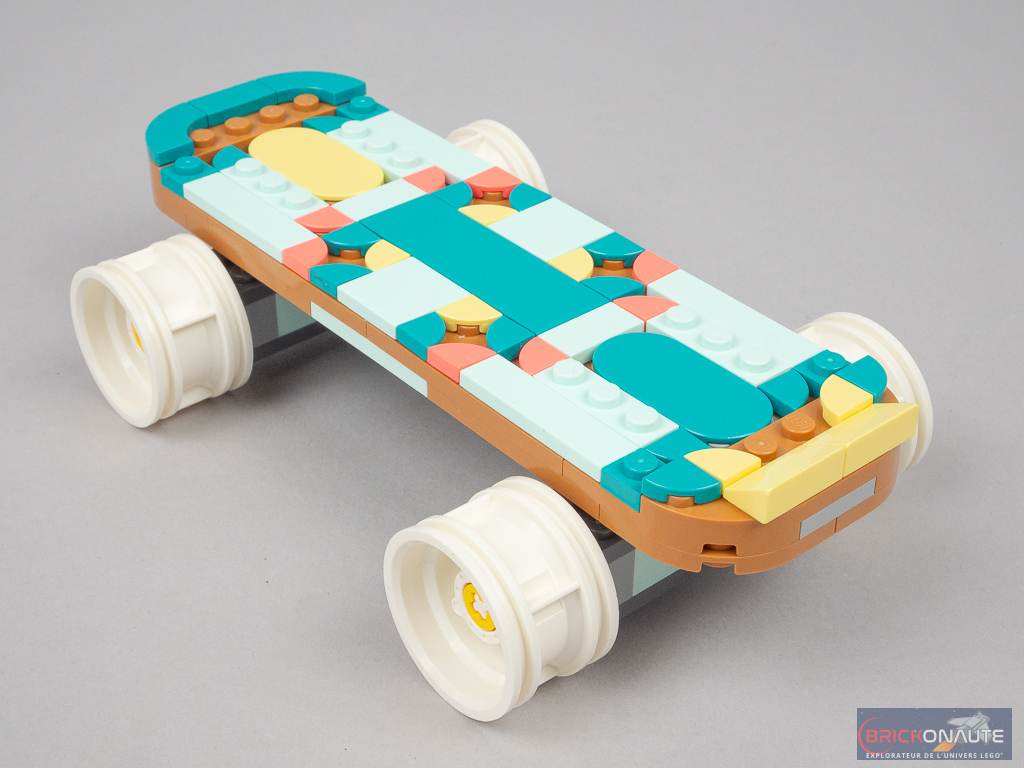 Ce qui m’embête aussi avec ce set, c’est le manque de jouabilité. Le jeune qui se verra offrir cette boîte ne pourra pas faire grand chose du patin une fois terminé, si ce n’est le faire rouler. N’en déplaise au descriptif officiel qui promet d’inventer une foule d’histoires avec les 3 différents modèles rétro… En l’état, ce patin à roulettes me semble plus destiné à être un objet de déco original pour adultes nostalgiques d’une époque révolue.