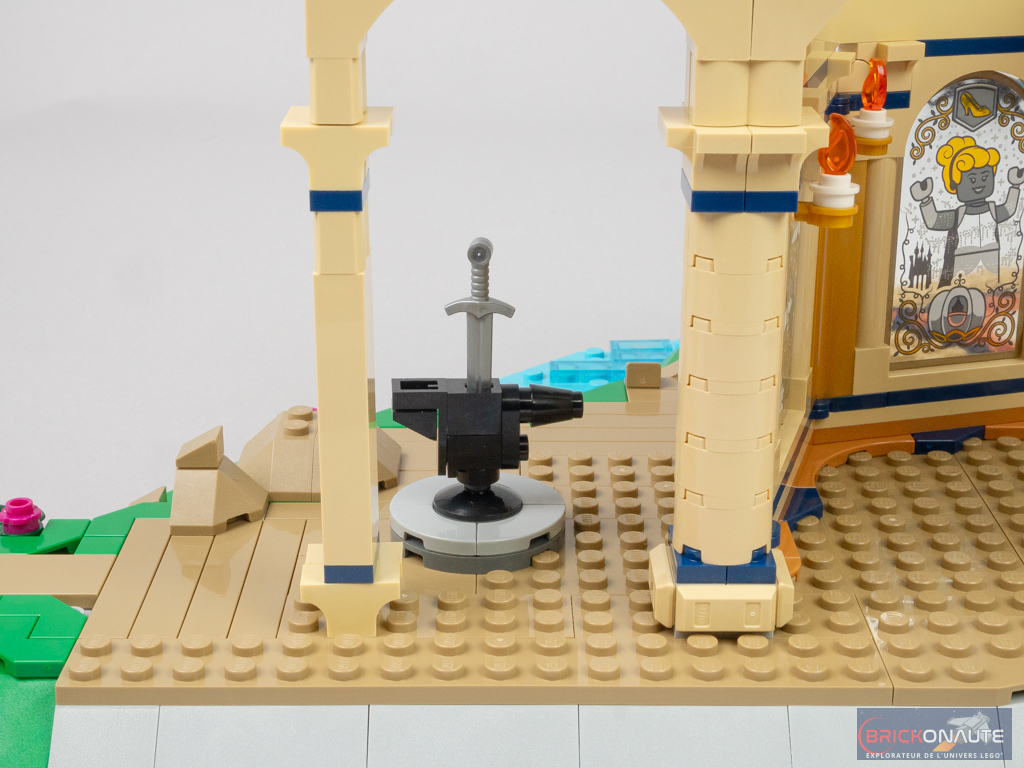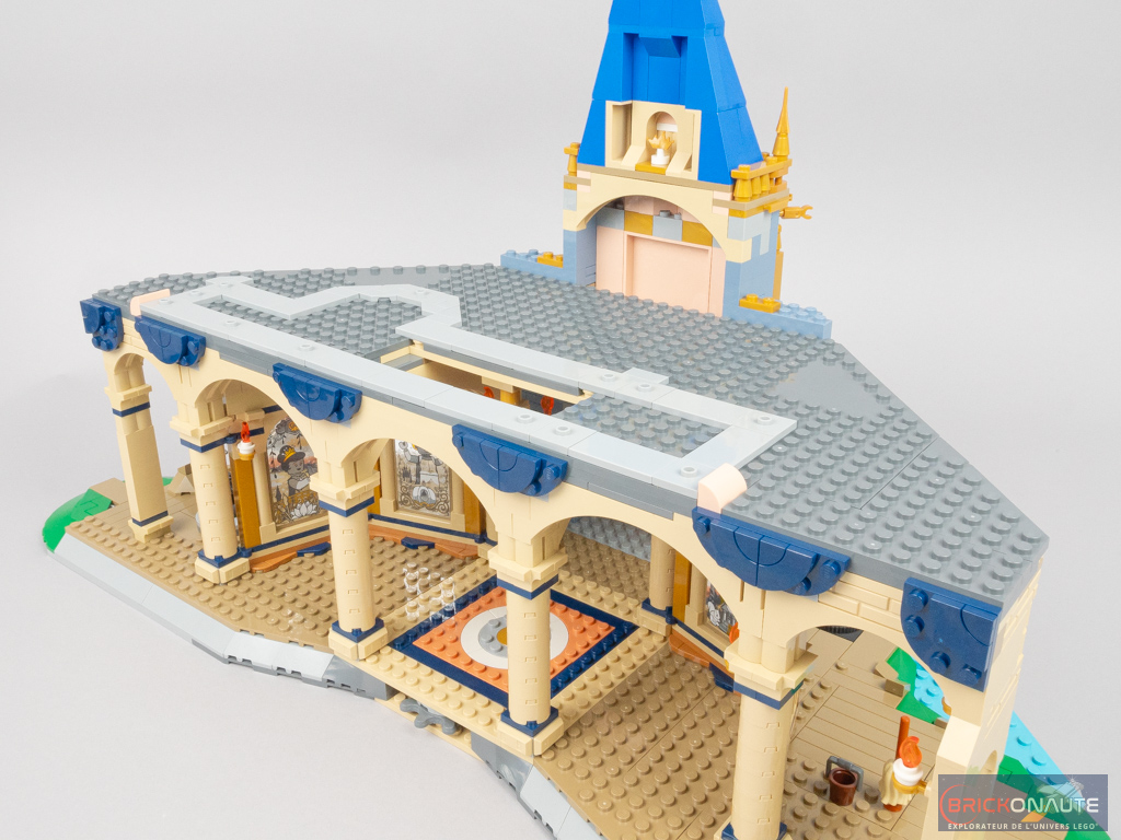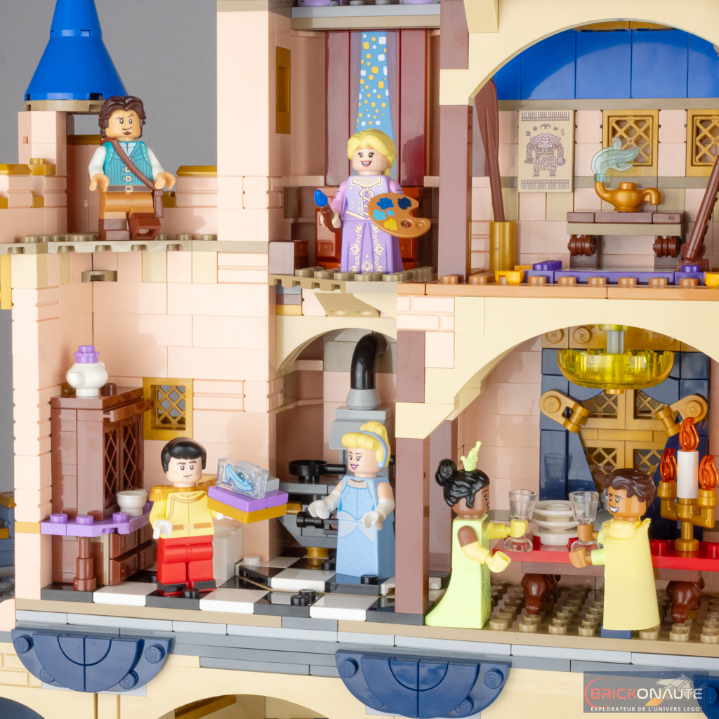 Côté intérieur, on trouve les références à pas moins de 14 films Disney – vous les retrouverez en détail dans le chapitre dédié à la construction. Je ferai le même reproche qu’au set de 2016 : le traitement de ces références est un peu inégal avec de très belles scènes comme la cuisine de La Belle et la Bête, et des références très (trop) légères à certains films. Pour Cendrillon (rappelons qu’il s’agit de son château), on ne trouve par exemple qu’une pantoufle de verre tampographiée et une citrouille…