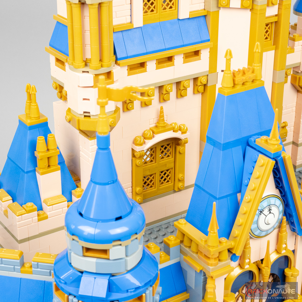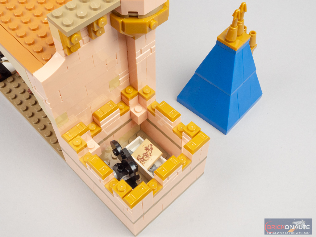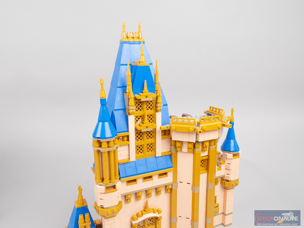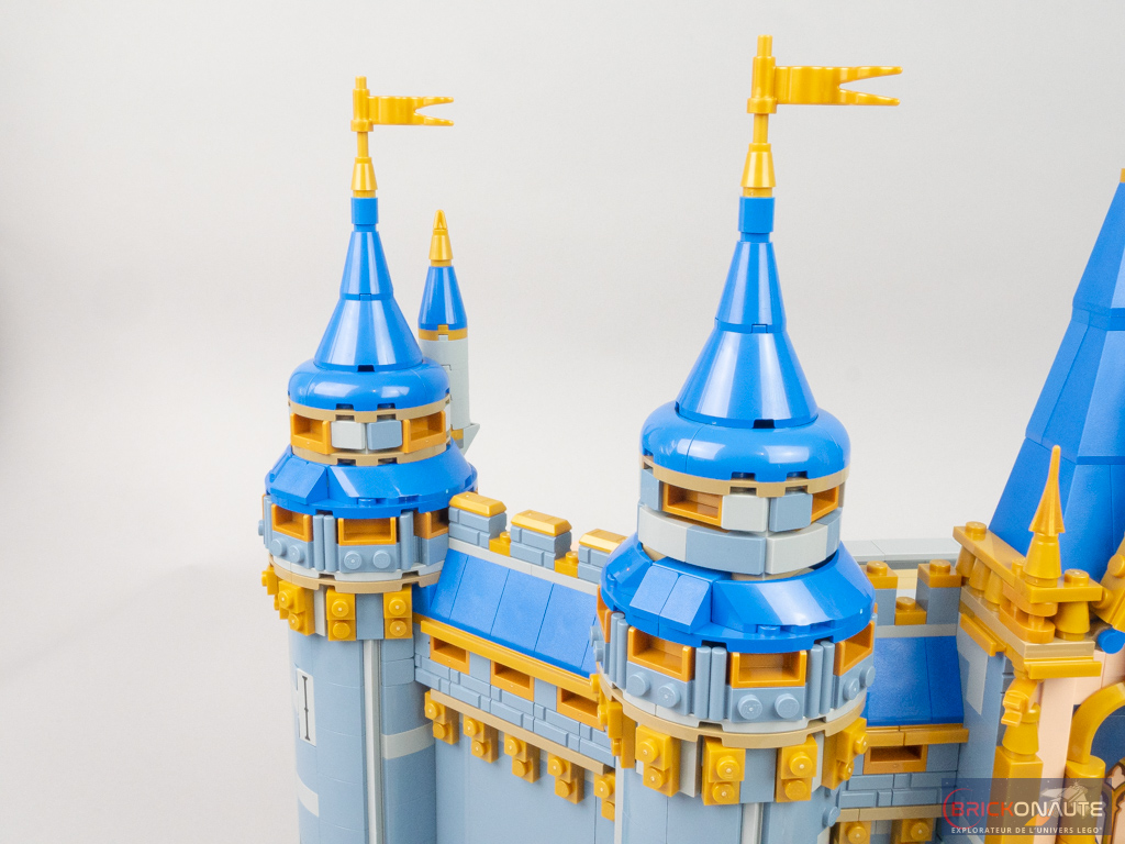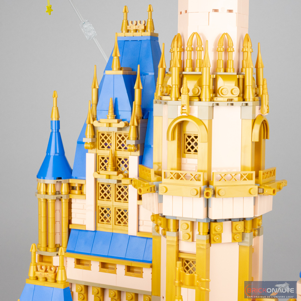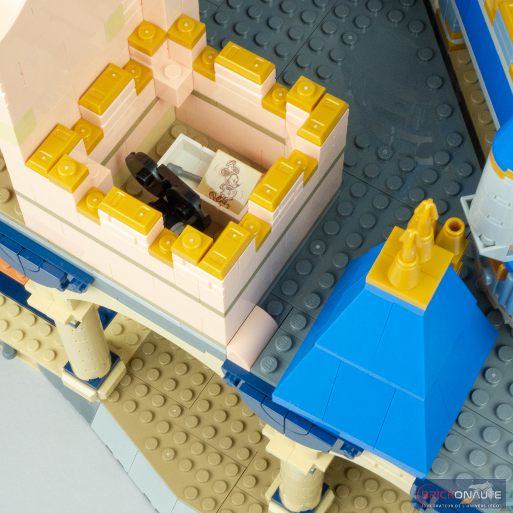Le petit comparatif ci-dessus permet de se rendre compte des principales différences entre les deux modèles et de se rendre compte, qu’objectivement, ce gain de largeur permet à ce nouveau château LEGO Disney d’être plus fidèle au modèle de référence que son ancêtre. Ce n’est pas parfait – les toitures coniques auraient par exemple mérité d’être plus élancées par exemple – mais c’est malgré tout une interprétation convaincante.
