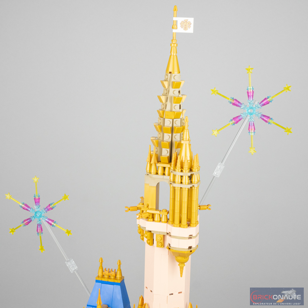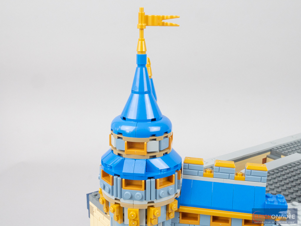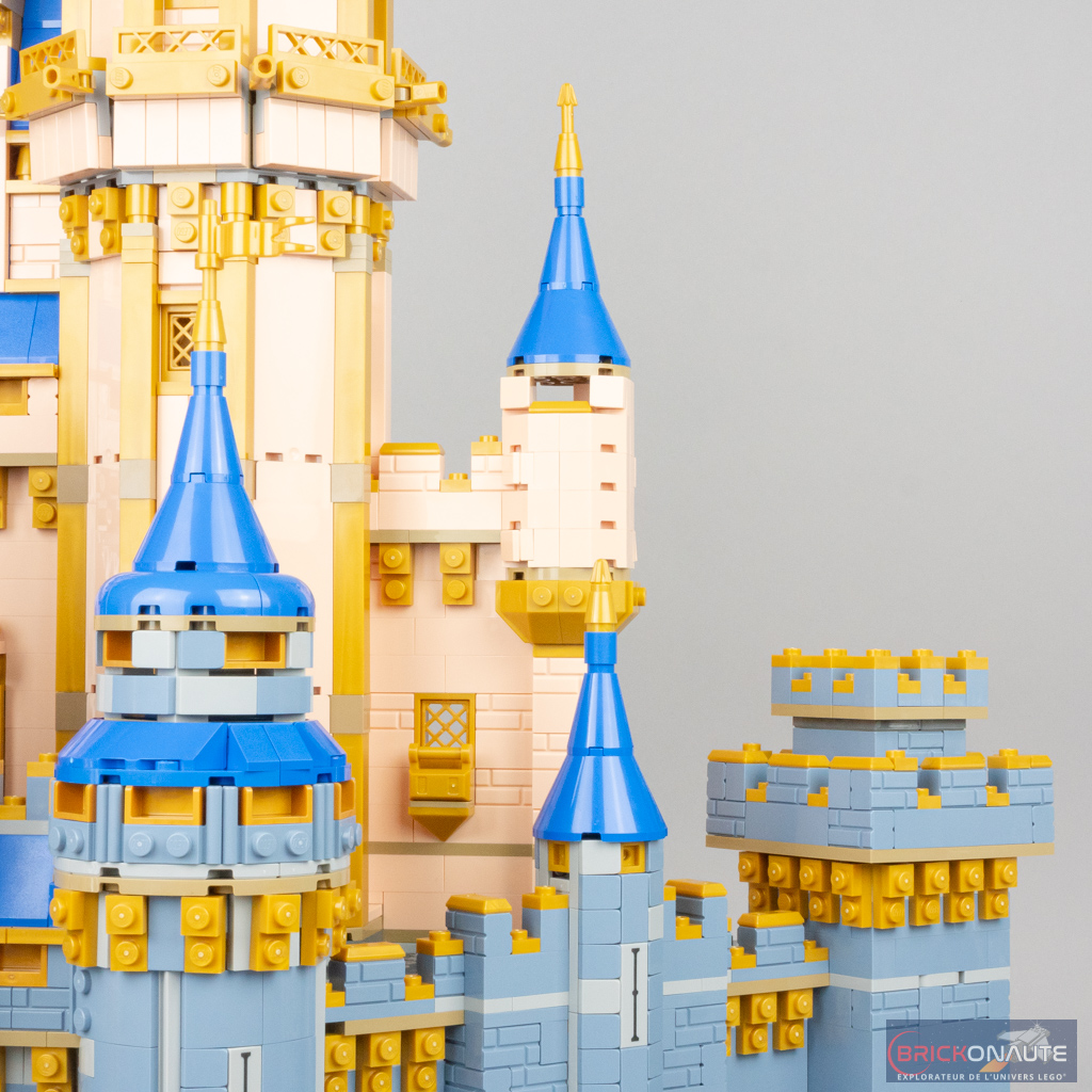 Le petit comparatif ci-dessus permet de se rendre compte des principales différences entre les deux modèles et de se rendre compte, qu’objectivement, ce gain de largeur permet à ce nouveau château LEGO Disney d’être plus fidèle au modèle de référence que son ancêtre. Ce n’est pas parfait – les toitures coniques auraient par exemple mérité d’être plus élancées par exemple – mais c’est malgré tout une interprétation convaincante.
