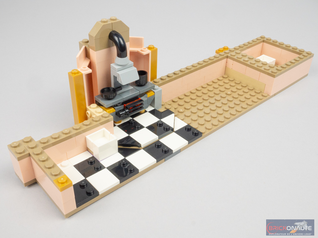 Dans la même veine, la référence à Blanche-Neige et les Sept Nains se limite à un pauvre miroir et celle à La Princesse et la Grenouille, à une grenouille à l’extérieur du château. C’est dommage, d’autant que les minifigs concernées sont incluses dans le set. La salle de bal du rez-de-chaussée est en revanche une belle évolution, avec ses jolies colonnes et ses miroirs. J’aurais par contre aimé une fonctionnalité de « danse » plus poussée permettant d’installer l’ensemble des protagonistes sur la piste. Un peu comme ce que proposait le set LEGO Harry Potter 75948 Hogwarts Clock Tower en 2019.
