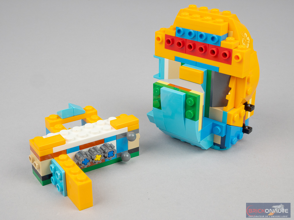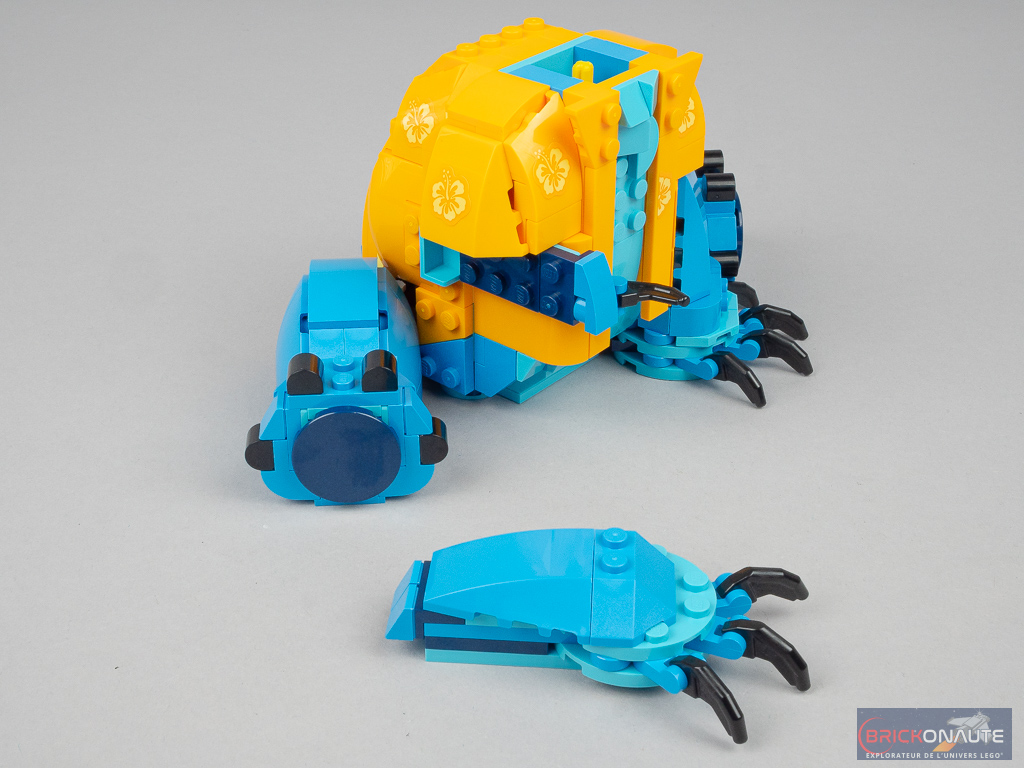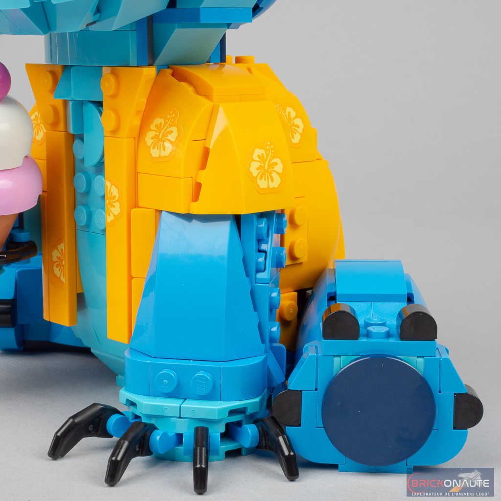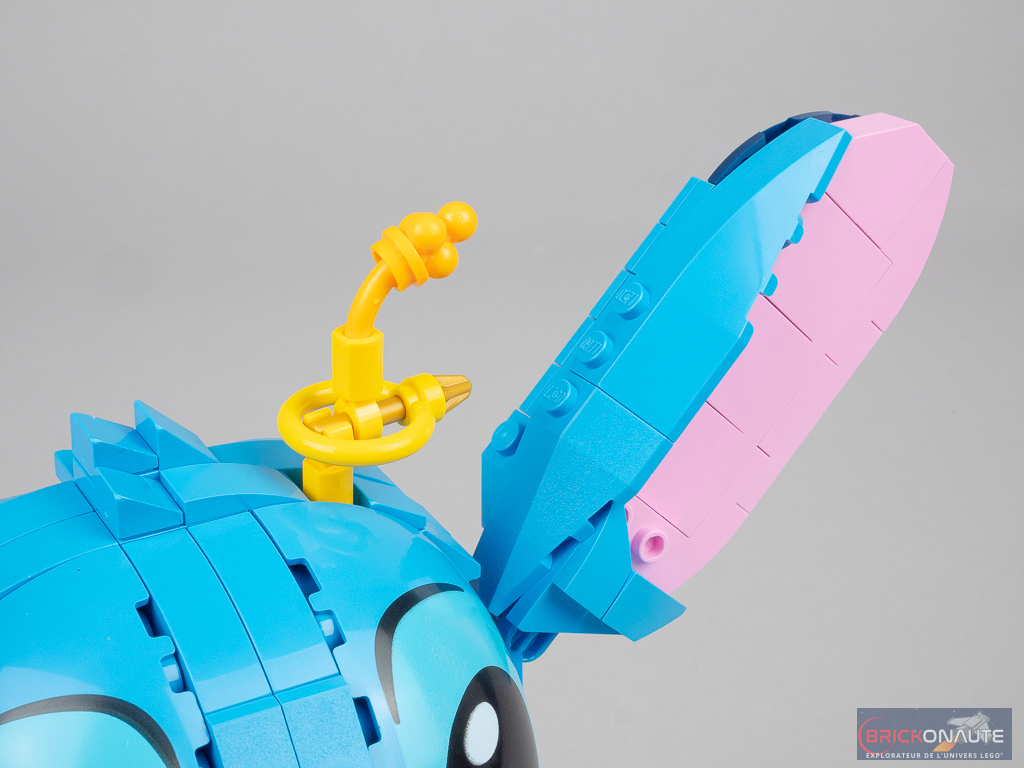 C’est d’ailleurs probablement le principal défaut de cette boîte, estampillée « 9+ », que LEGO nous vend de la manière suivante « Les enfants créent leur propre Stitch avec une chemise hawaïenne, une fleur et une glace, puis jouent avec ou décorent leur chambre. » En l’état, ils ne pourront pas vraiment jouer avec puisque les mobilités offertes sont peu nombreuses : la tête tourne et les oreilles sont orientables… et c’est tout. Cet avis n’engage que moi mais en l’état, cette boîte semble plus destinée à un public adulte qu’à un(e) jeune fan de l’Expérience 626.