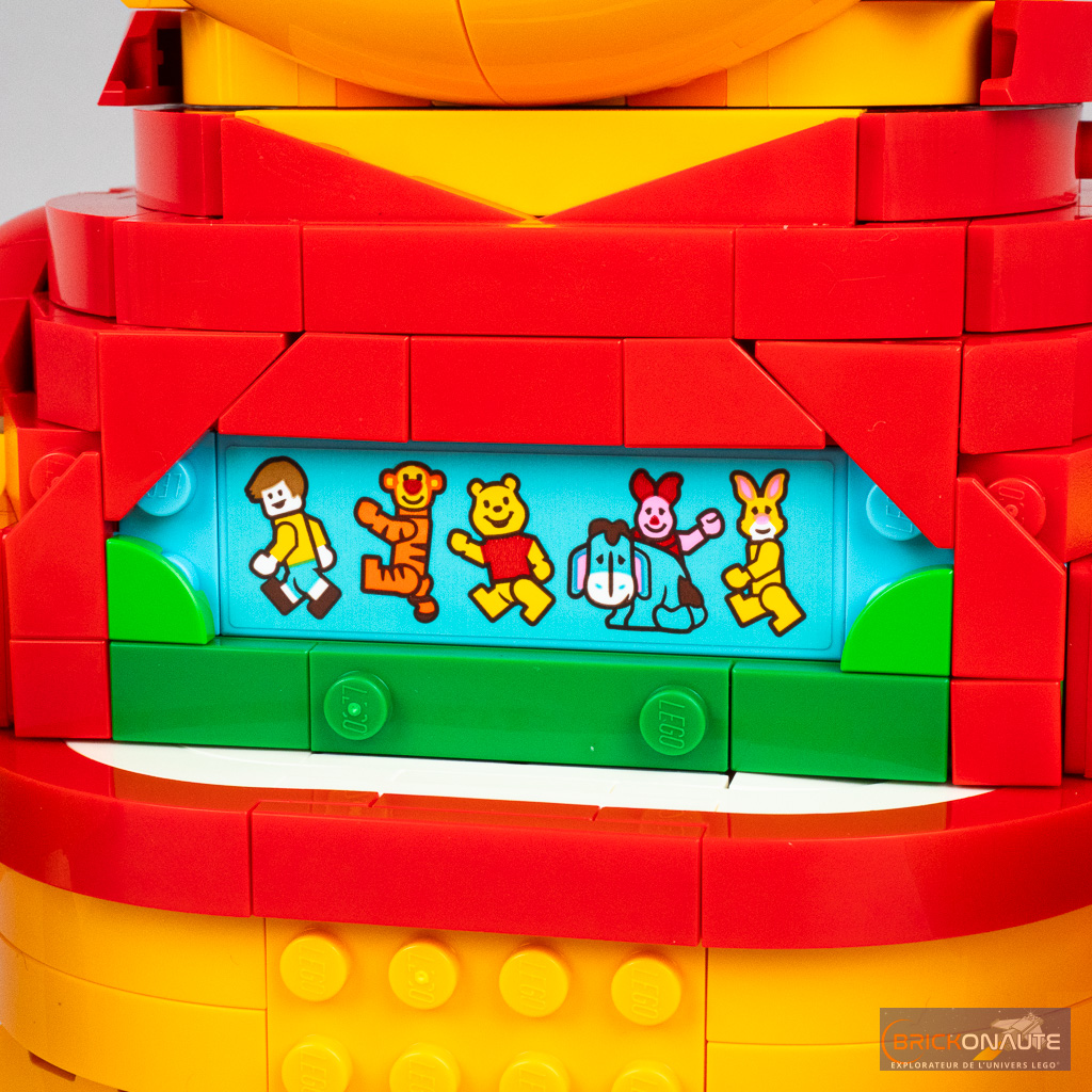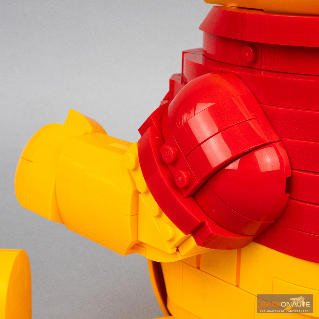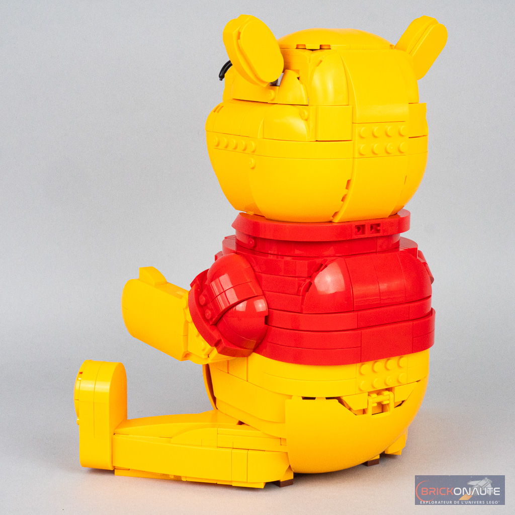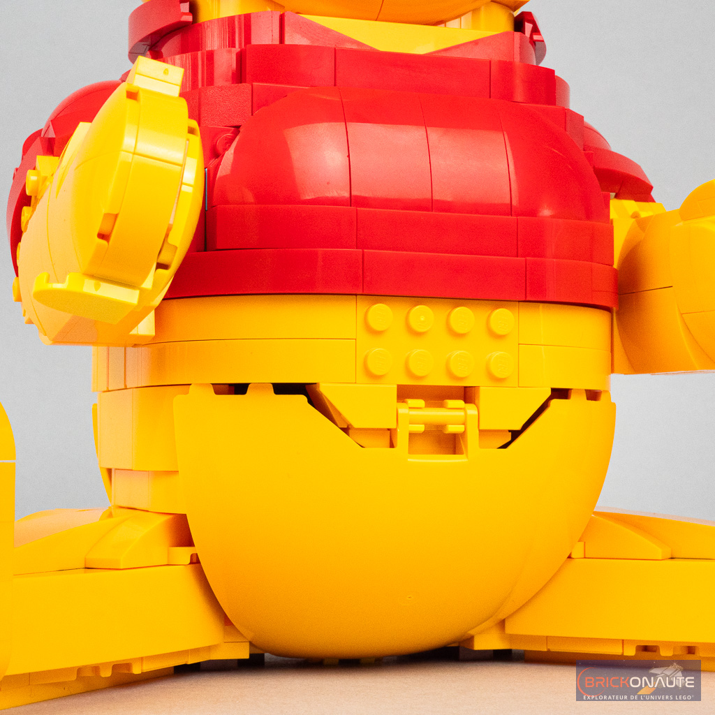 S’il n’est jamais facile de reproduire des courbes avec des éléments LEGO, et malgré quelques raccords hasardeux, je trouve que le designer s’en tire bien en nous proposant une version quasi studless de Winnie avec son ventre proéminent et son pull rouge trop court.