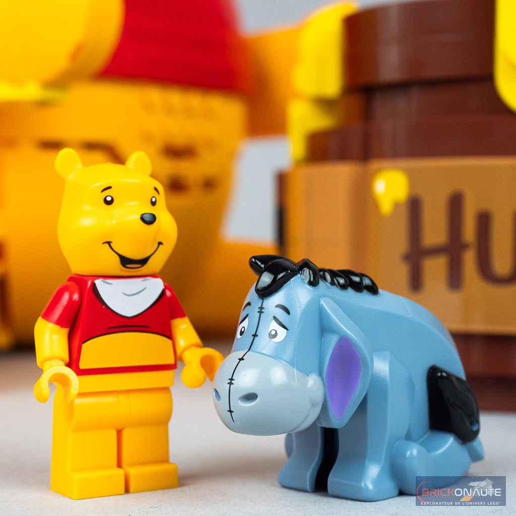 Je le disais juste au-dessus, deux personnages sont fournis dans cette boîte avec un minifig de Winnie l’Ourson et Bourriquet. J’ai presque envie de dire « seulement » deux personnages, pour un set dédié aux adultes collectionneurs (et nostalgiques) vendu pour 150 € – j’aurais aimé un casting plus fourni. Certes on pourra retrouver Porcinet dans la référence LEGO Disney 43305 Piglet’s Birthday Fun, elle aussi attendue pour le 1er mars 2026, mais LEGO fait l’impasse sur Tigrou, Coco Lapin, Jean-Christophe et consorts.