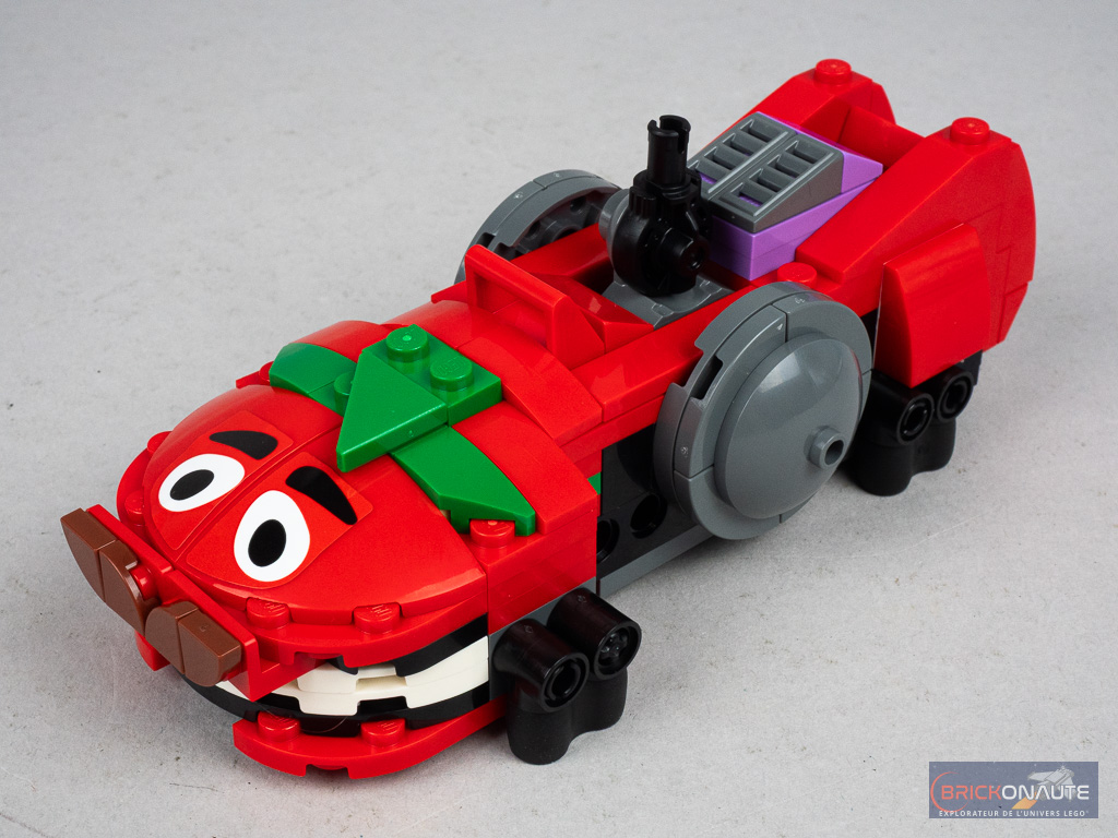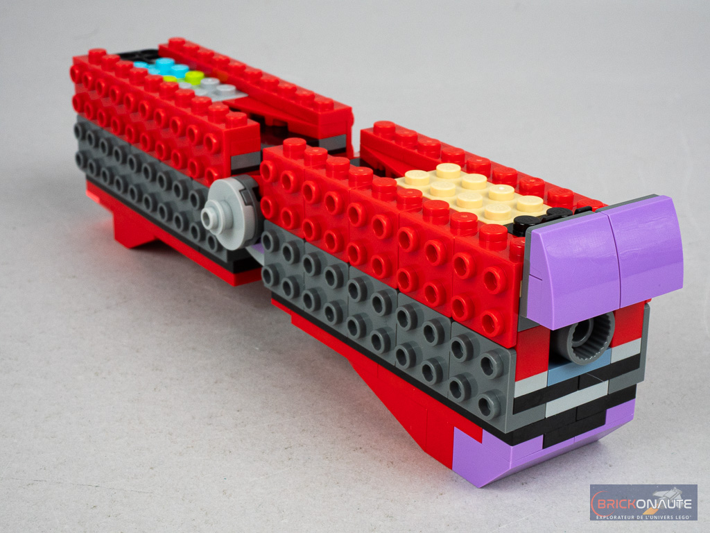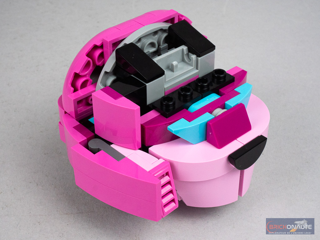 Personnellement j’aime bien cette approche un peu « de bric et de broc » qui a de nombreux mérites. Elle nous offre évidemment un mélange de couleurs détonnant, mais aussi quelques designs très originaux – je pense ici à ce bras dino « Rex » ou à cette tête d’ours en peluche version Saturday Night Fever. Après avoir comparé avec quelques visuels disponibles sur la toile et dans la notice d’instruction, l’interprétation faite par LEGO du personnage me semble tout à fait acceptable.