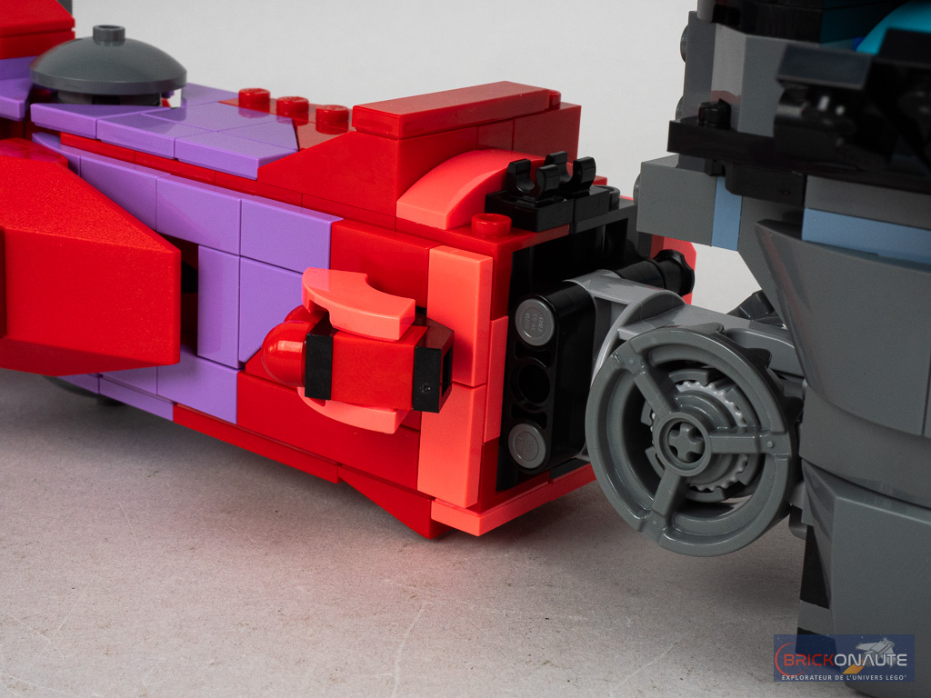 Par contre, il n’y a pas le moindre « lance-bidules » – et pour cause, je le disais en introduction, ce n’est résolument pas un jouet destiné aux plus jeunes. Certes les nouveaux « joints XL » sont indispensables à la stabilité du modèle pour supporter son poids, mais ils sont difficilement manipulables et il n’était pas rare que je me retrouve avec des petits éléments qui se détachent lors des différentes manipulations nécessaires à la séance photo.