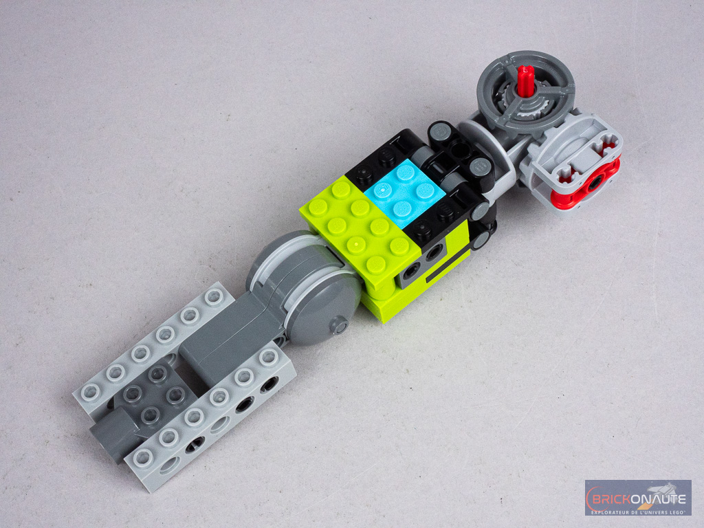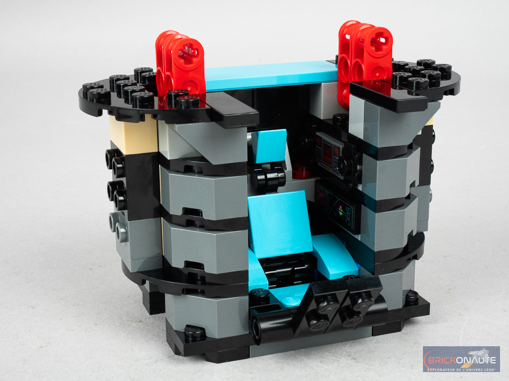 Malgré sa taille imposante, l’expérience de construction ne dépaysera pas ceux qui sont habitués à la construction de robots LEGO. On assemble d’abord le torse, qui renferme un petit poste de pilotage avec son siège et quelques écrans. Au niveau des hanches, on voit déjà les deux premiers « joints XL » qui serviront à fixer les jambes.