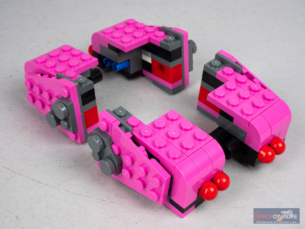 L’inventaire compte 2503 pièces pour 229,99 €, soit 0,092 €/pièce – ce qui le place dans la fourchette haute des références LEGO Fortnite. On remarquera malgré tout de nombreux éléments intéressants dont 4 joints « XL » pour la fixation des bras et des jambes (un élément introduit pour la fixation du crâne du set LEGO Jurassic World 76968 Dinosaur Fossils: Tyrannosaurus rex), quelques éléments lime et un grosse variété de pièces dans des tons roses, pour certaines inédites et qui inspireront probablement certains MOCeurs.