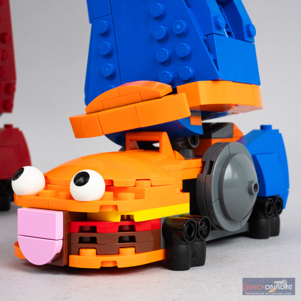Il est vraiment cool ce Mecha team leader ! C’est un personnage bien original, comme Peely Bone, il ne passera inaperçu. Moins d’autocollants pour un set d’expo serait mieux… Par contre c’est cool d’avoir sa version minifig.
