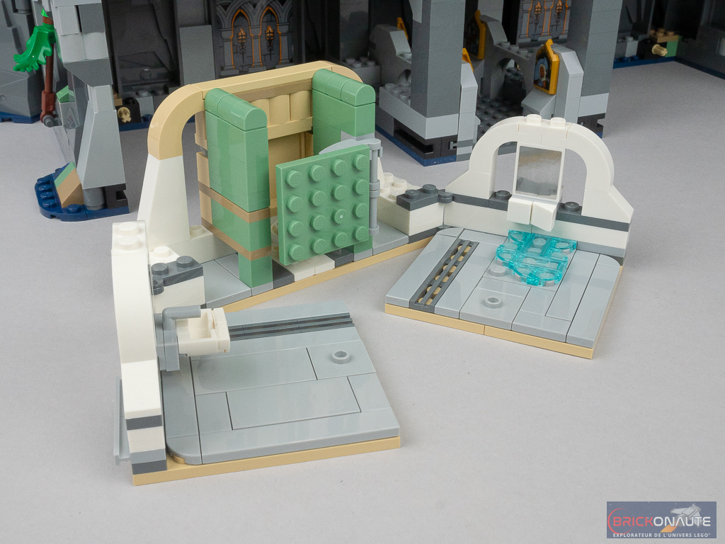 Les deux derniers sachets de pièces ont le droit à une notice séparée pour la construction de la salle de bains et de la salle commune de Poufsouffle. Ces deux modules sont conçus de la même manière : une structure centrale et deux structures latérales attachées sur des charnières. Des rails côté extérieur permettent de les insérer dans les « niches » de la base rocheuse. La conception de la salle de bains est volontairement fragile pour que le troll puisse tout démolir à sa guise.