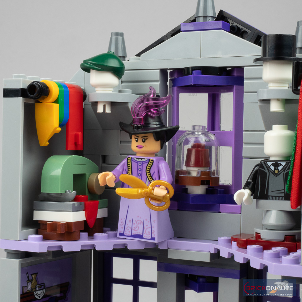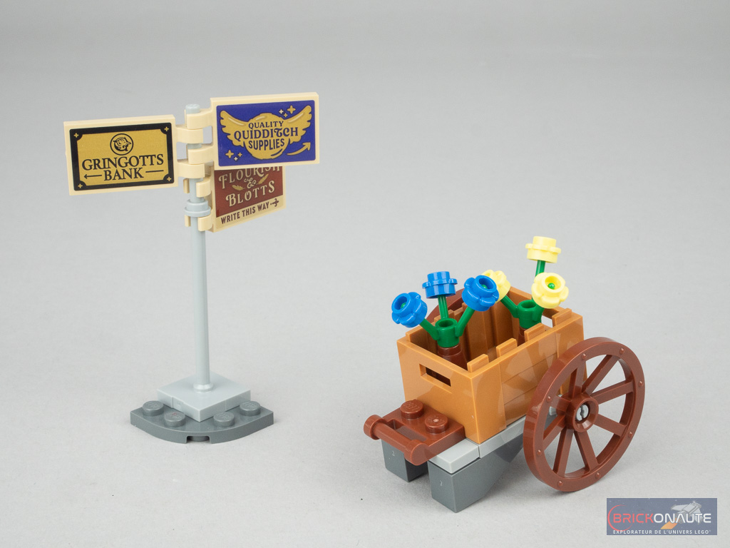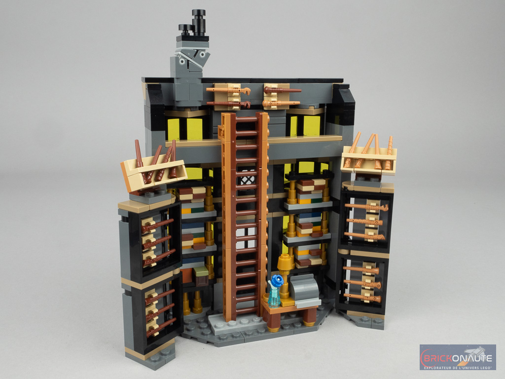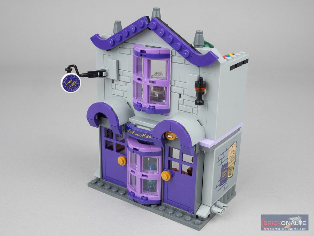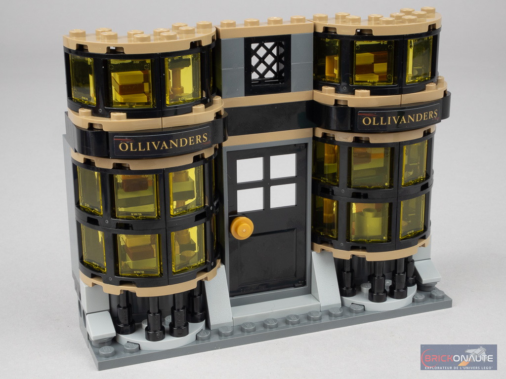 De jolis façades de bâtiments, surtout celui d’Ollivander. Pas mal de minifigs et d’accessoires pour la jouabilité. Un bon playset un peu cher dans cette gamme.