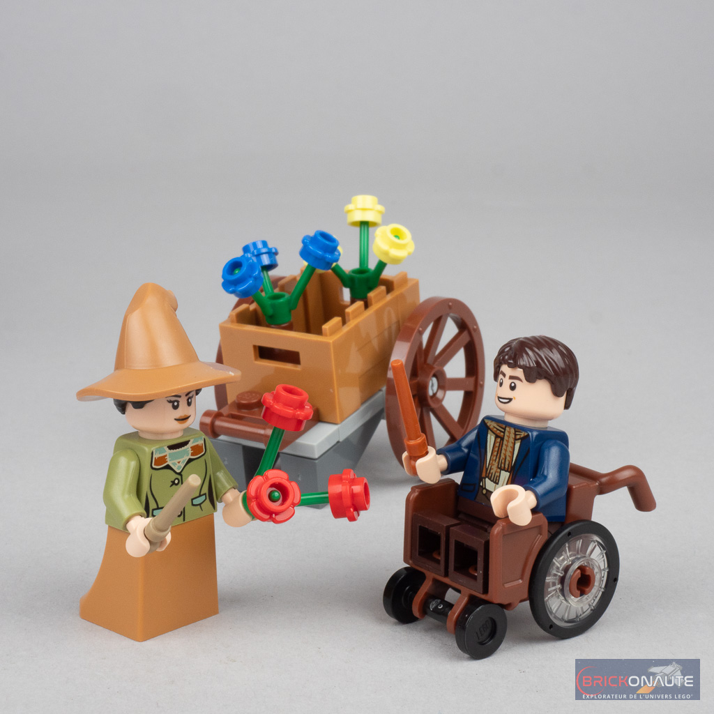 2 sorciers « génériques » et non nommés sont également proposés – simplement présentés comme « Witch » et « Wizard » sur la boîte. Si la tenue du sorcier a déjà été vue (dans un seul autre set, 10316 The Lord of the Rings Rivendell, pour Pippin), celle de la sorcière est inédite. Elles sont bien réalisées, on regrettera simplement les jambes, et surtout la robe, tristement monochromes. Le chapeau bicolore intégrant les cheveux de la sorcière est également inédit. Notez que le sorcier se déplace en fauteuil roulant – vous le verrez sur les autres photos de cet article – un bon point pour la représentativité.