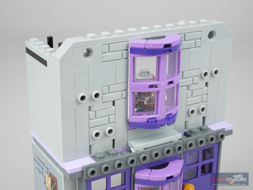 Je le disais un peu plus haut, les deux bâtiments n’ont pas de toit – juste une « tranche » visible de l’extérieur pour en reproduire la forme. Si cela m’a un peu surpris au premier abord, c’est finalement raccord avec ce que proposait la boutique des frères Weasley l’an passé dans la référence 76422 Diagon Alley: Weasley’s Wizard Wheezes (834 pièces – 94,99 €) et ce n’est pas une mauvaise idée pour faciliter l’accès et la jouabilité sans pour autant (trop) sacrifier le design général.