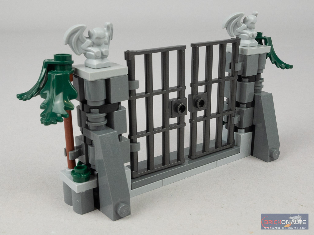 L’inventaire contient 1601 pièces dont 9 minifigs pour un prix public de 149,99 € – un ratio plutôt correct pour la gamme LEGO Harry Potter mais il ne vous aura pas échappé, rien qu’en observant les visuels officiels, qu’il y a beaucoup de petits éléments dans cet inventaire. Du côté des pièces intéressantes, on remarquera les deux gargouilles qui ornent les pilastres du portail, ou encore les 59 vitres en trans black pour l’ensemble des fenêtres du manoir.