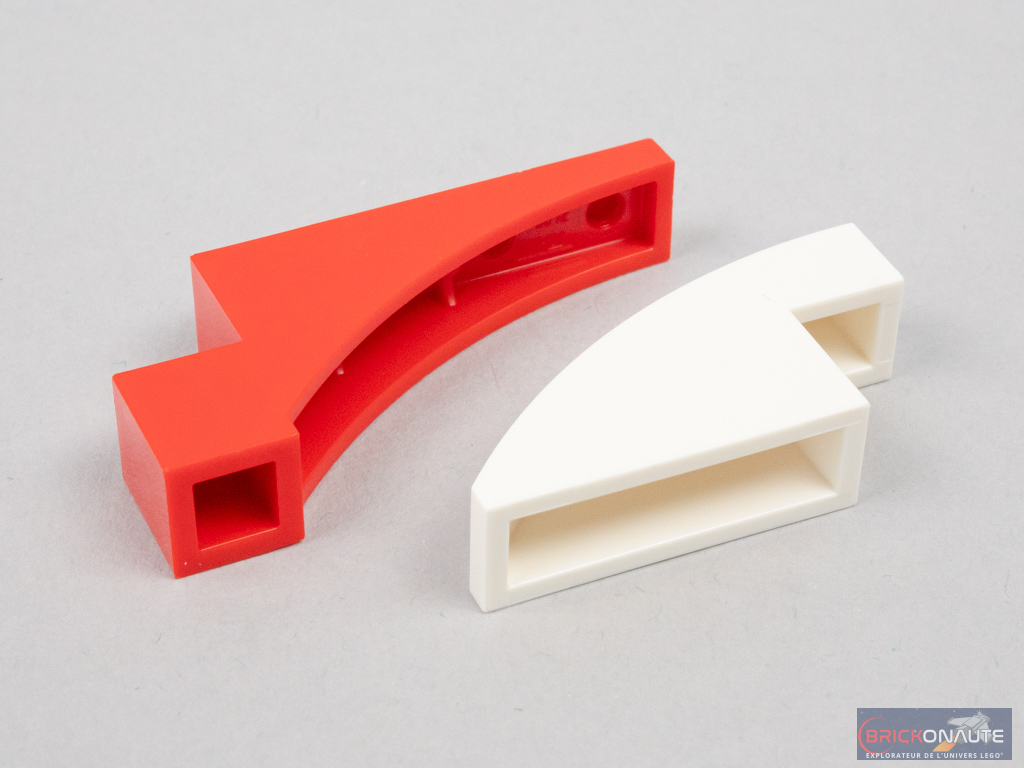 L’inventaire est plutôt « restreint » pour une voiture LEGO Icons avec 1210 pièces. On remarquera quelques éléments intéressants dans cet inventaire, dont de nombreux éléments tampographiés et une belle variété de slopes et arches rouges – sans oublier les tout nouveaux pare-brise, livrés en 2 exemplaires.