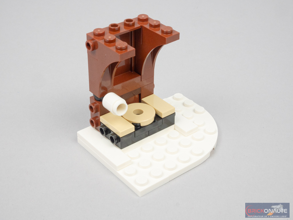 La construction est d’ailleurs plutôt plaisante, même si elle ne fait pas appel à des « techniques » sorties de nulle part – j’ai malgré tout particulièrement aimé la manière de réaliser la toiture. On passe un bon moment durant les 3 petites heures nécessaires à l’assemblage et, autre chose appréciable, les autocollants sont peu nombreux. On pourra même partager la construction avec un plus jeune : les petits assemblages annexes font l’objet d’un livret d’instructions séparé.